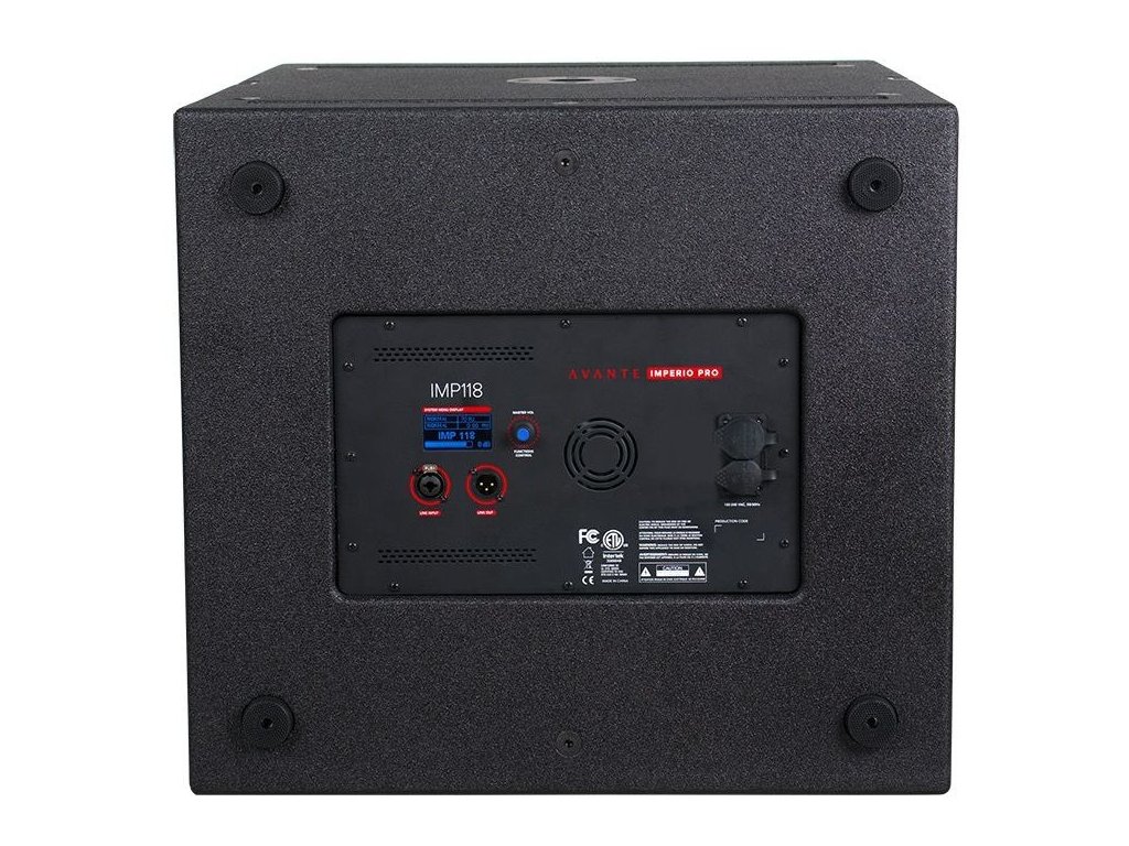 Avante Audio Imperio Pro IMP118 to profesjonalny aktywny subwoofer zaprojektowany do dużych wydarzeń i doskonale pasuje do mini line array Avante Imperio Pro IMP205. Dzięki wydajnemu 18-calowemu głośnikowi niskotonowemu i systemowi bass-reflex, subwoofer ten zapewnia wyjątkową charakterystykę częstotliwościową 32 Hz-130 Hz (-10dB) i 38 Hz-130 Hz (-3dB), co zapewnia głębokie i mocne basy.