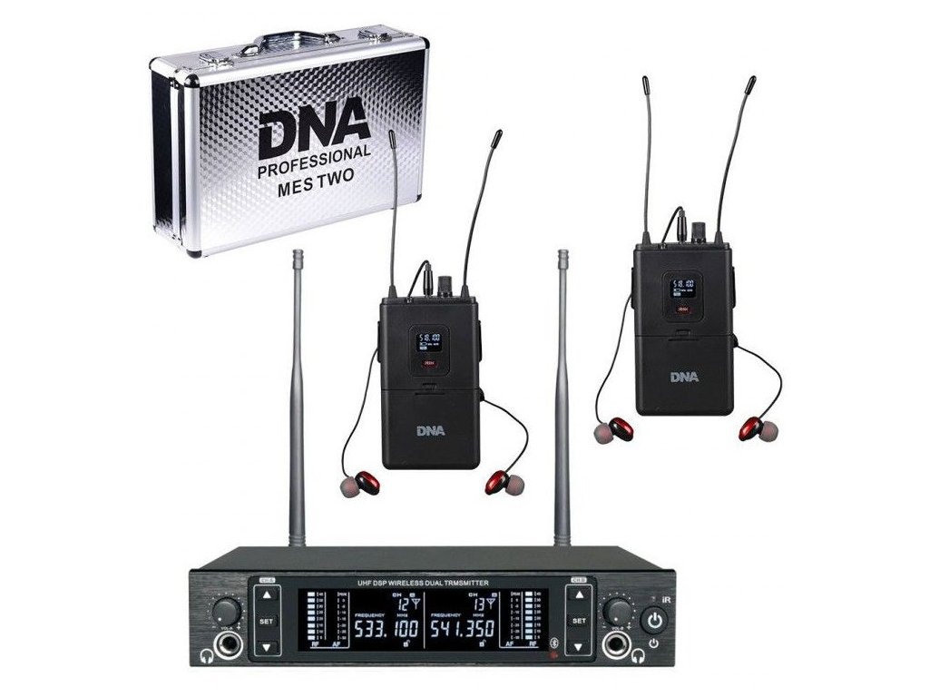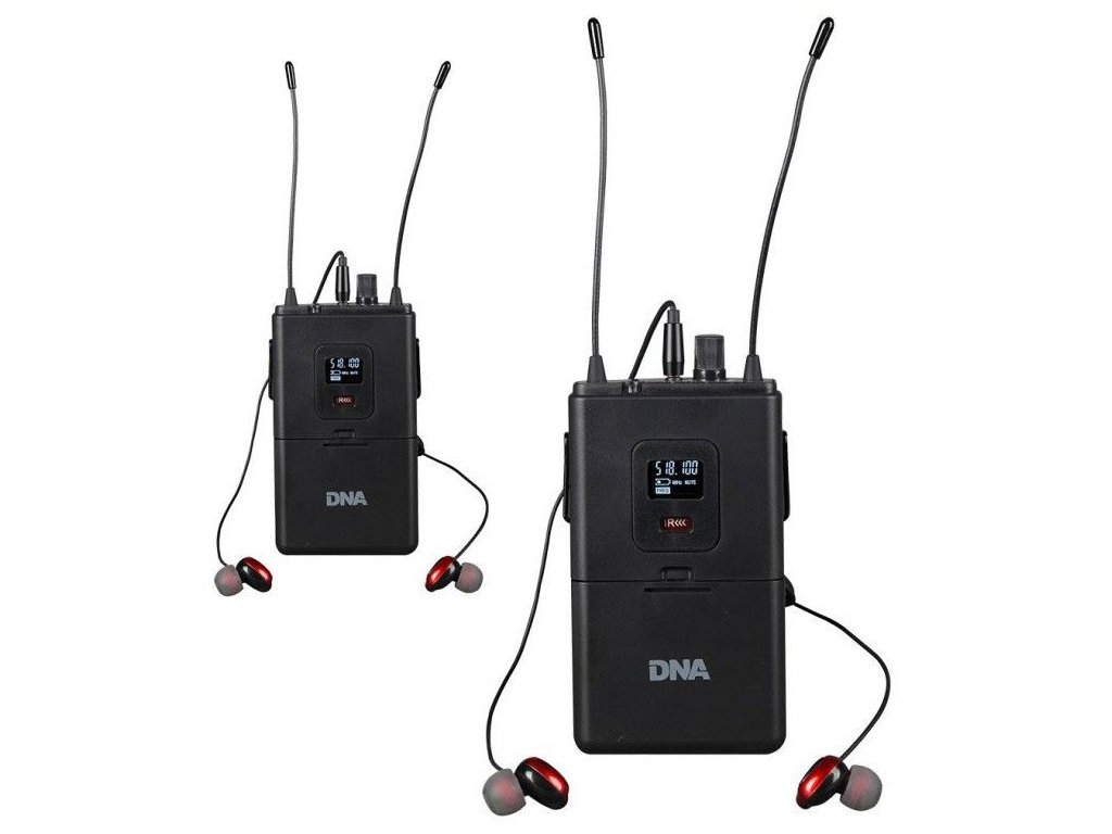 DNA IN-EAR Double to wysokiej jakości monofoniczne bezprzewodowe urządzenie odsłuchowe douszne oparte na technologii cyfrowej. Zestaw do monitorowania dźwięku składa się z nadajnika fal ultrakrótkich (UHF), dwóch par słuchawek i dwóch odbiorników bodypack. Całość umieszczona jest w eleganckiej walizce wypełnionej miękką gąbką techniczną ze specjalnie przygotowanymi wycięciami do przechowywania i bezpiecznego przenoszenia sprzętu.