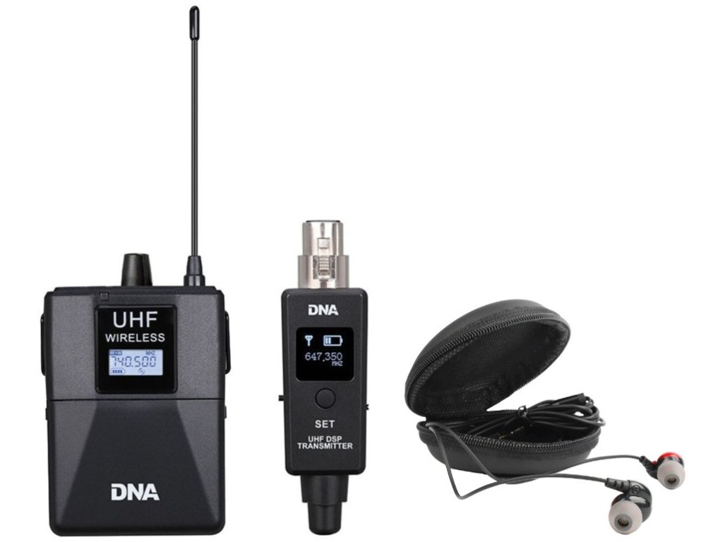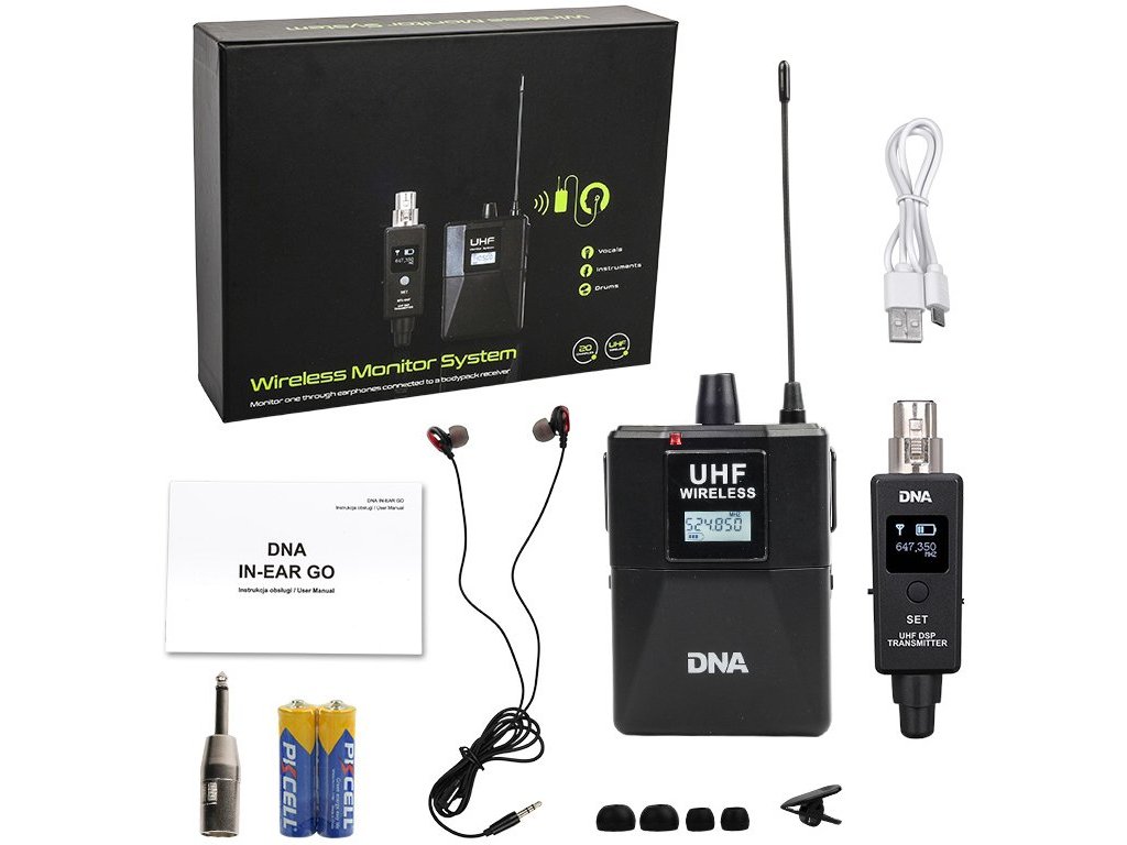 DNA IN-EAR GO to wysokiej jakości bezprzewodowe urządzenie do monitoringu dousznego, oparte na technologii cyfrowej. Zestaw do monitoringu dźwięku składa się z bezprzewodowego nadajnika i odbiornika RF (UHF), pary słuchawek dousznych i beltpacka. Jest to idealne narzędzie pracy dla muzyków i wokalistów, zespołów weselnych, firm eventowych i DJ-ów.