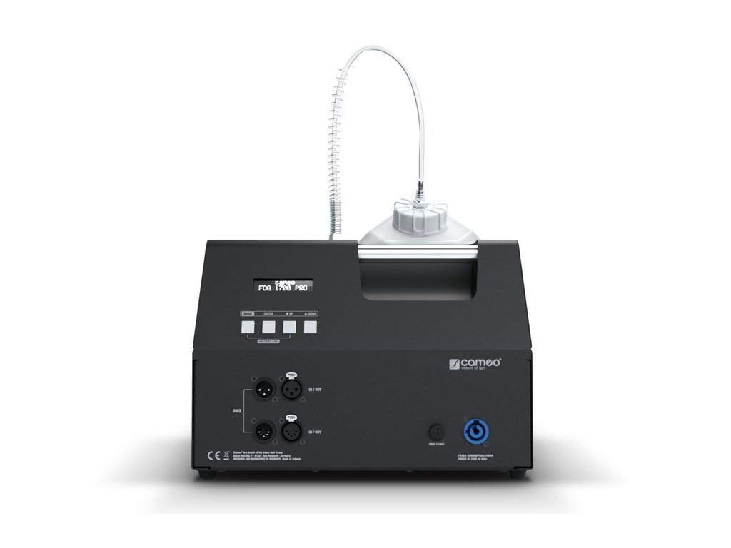INSTANT FOG 1700 PRO jest sterowany za pomocą DMX w trybie 3-kanałowym lub za pomocą czytelnego, o wysokim kontraście wyświetlacza LCD 16 x 2 i czterech przycisków. Zapewnia zarówno 3-pinowe, jak i 5-pinowe wejścia i wyjścia DMX oraz złącza kompatybilne z powerCON. Wygodna funkcja automatycznego wyłączania zapobiega uszkodzeniu pompy, gdy zbiornik na płyn jest pusty. Wytwornica dymu jest dostarczana z adapterem węża 100 mm, jeśli chcesz odprowadzać dym z urządzenia w inne miejsce. Opcjonalne akcesoria obejmują unikalny zestaw do podwieszania, uchwyt w kształcie litery U i miskę ociekową, które można zamontować bez użycia narzędzi. INSTANT FOG 1700 PRO jest wszechstronny i przyjazny dla użytkownika, dzięki czemu idealnie nadaje się do występów na żywo, dyskotek i teatrów, a także do kamer lub wypożyczalni.