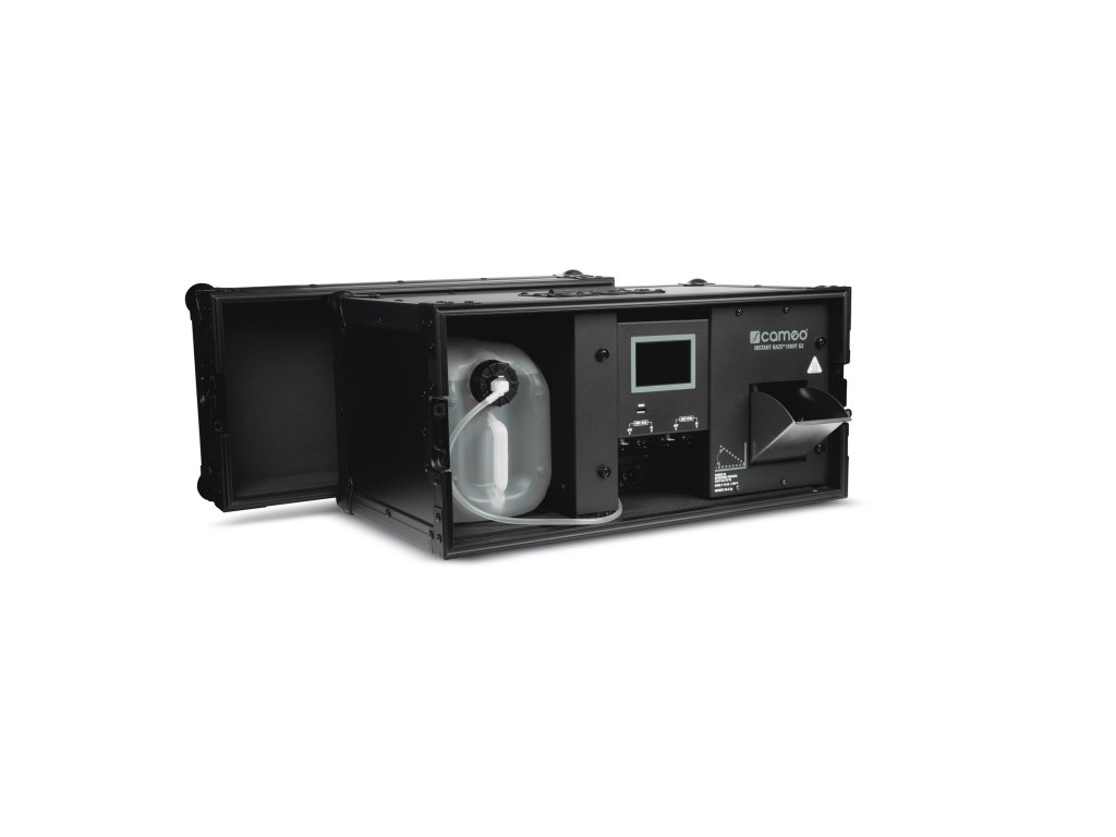 Cameo INSTANT HAZE 1500 T G2 to wysokowydajny hazer zaprojektowany do wymagających profesjonalnych zastosowań, nawet podczas częstych podróży dzięki solidnej obudowie typu flightcase. Jego kluczowe zalety to minimalne zużycie płynu (tylko 9 ml/min), wyjątkowo szybki czas nagrzewania poniżej 1 minuty i bardzo cicha praca.