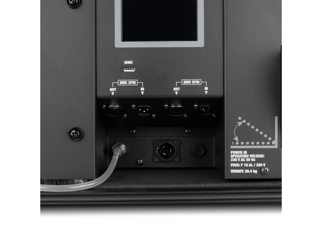 Dzięki wysoce wydajnej grzałce sterowanej mikroprocesorem i wytrzymałej rurce parownika ze stali nierdzewnej urządzenie jest odporne i łatwe w utrzymaniu. Funkcja automatycznego samooczyszczania zapobiega zatykaniu rurki. Wyjście pary i prędkość wentylatora można płynnie regulować w krokach co 1%, co umożliwia precyzyjne dopasowanie efektu do dowolnej przestrzeni lub wielkości sceny.