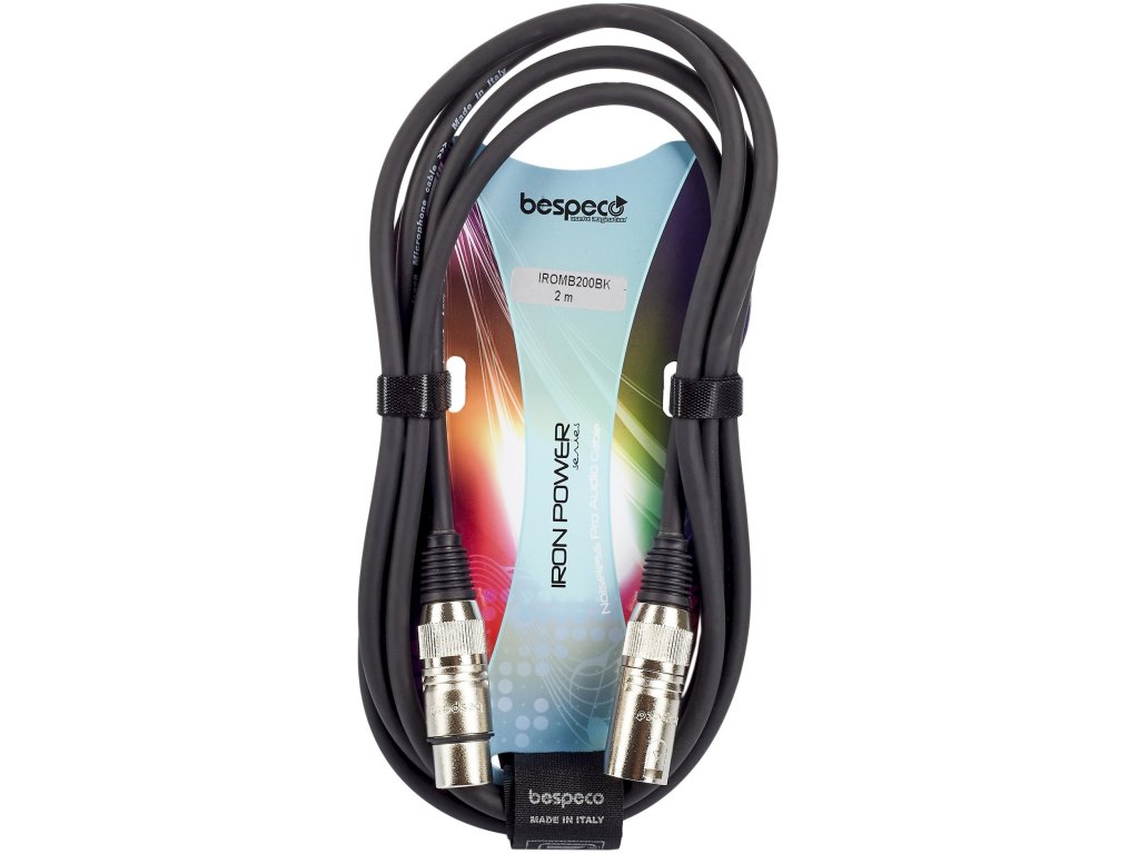 Kabel mikrofonowy Bespeco z serii Iron. Wnętrze kabla jest wykonane z miedzi OFC o czystości 98%, złącza z wytrzymałej stali, a powierzchnia z niezwykle mocnego PVC, co zapewnia maksymalną elastyczność i długotrwałą żywotność. W zestawie para pasków Velcro ułatwiających transport.