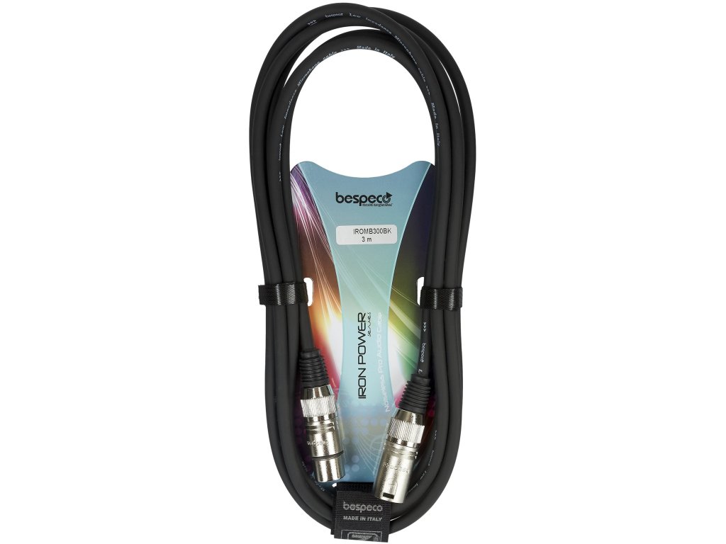 Kabel mikrofonowy Bespeco z serii Iron. Wnętrze kabla jest wykonane z miedzi OFC o czystości 98%, złącza z wytrzymałej stali, a powierzchnia z niezwykle mocnego PVC, co zapewnia maksymalną elastyczność i długotrwałą żywotność. W zestawie para pasków Velcro ułatwiających transport.
