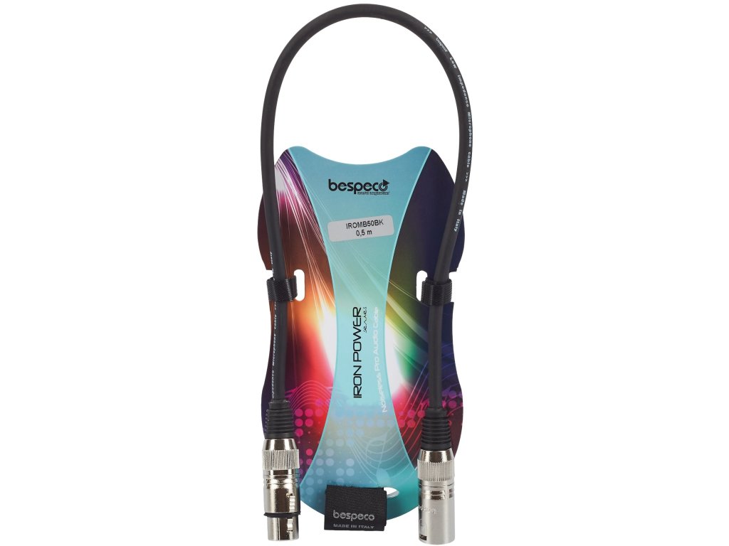 Kabel mikrofonowy Bespeco z serii Iron. Wnętrze kabla jest wykonane z miedzi OFC o czystości 98%, złącza z wytrzymałej stali, a powierzchnia z niezwykle mocnego PVC, co zapewnia maksymalną elastyczność i długotrwałą żywotność. W zestawie para pasków Velcro ułatwiających transport.