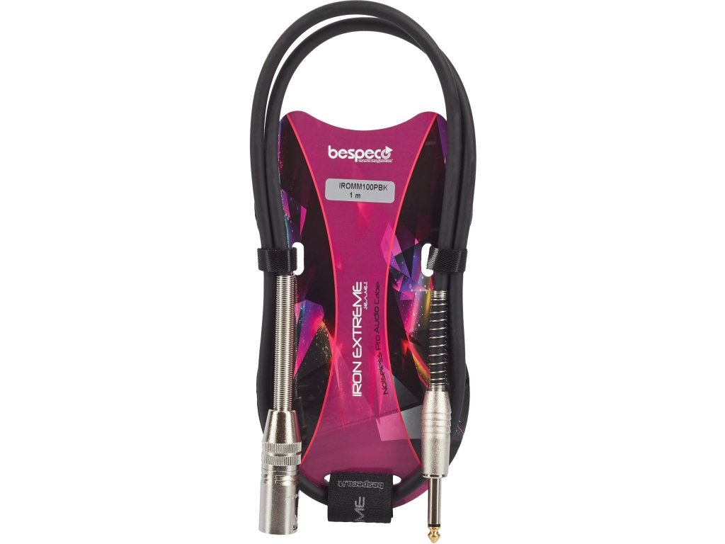 Kabel mikrofonowy z profesjonalnymi metalowymi złączami XLR(M) i Jack 6.3mm. Ten kabel instrumentalny z serii Bespeco Iron Extreme posiada przewodnik wykonany w 98% z miedzi beztlenowej (OFC) oraz wewnętrzną półprzewodzącą powłokę PVC, dzięki której nie generuje żadnych szumów. Do jakości dźwięku przyczynia się również spiralne ekranowanie na ponad 92 procentach przewodnika lub pozłacane jacki z metalowym korpusem. Oczywistością jest odporna i jednocześnie elastyczna powłoka z PVC i wulkanizowanego silikonu.