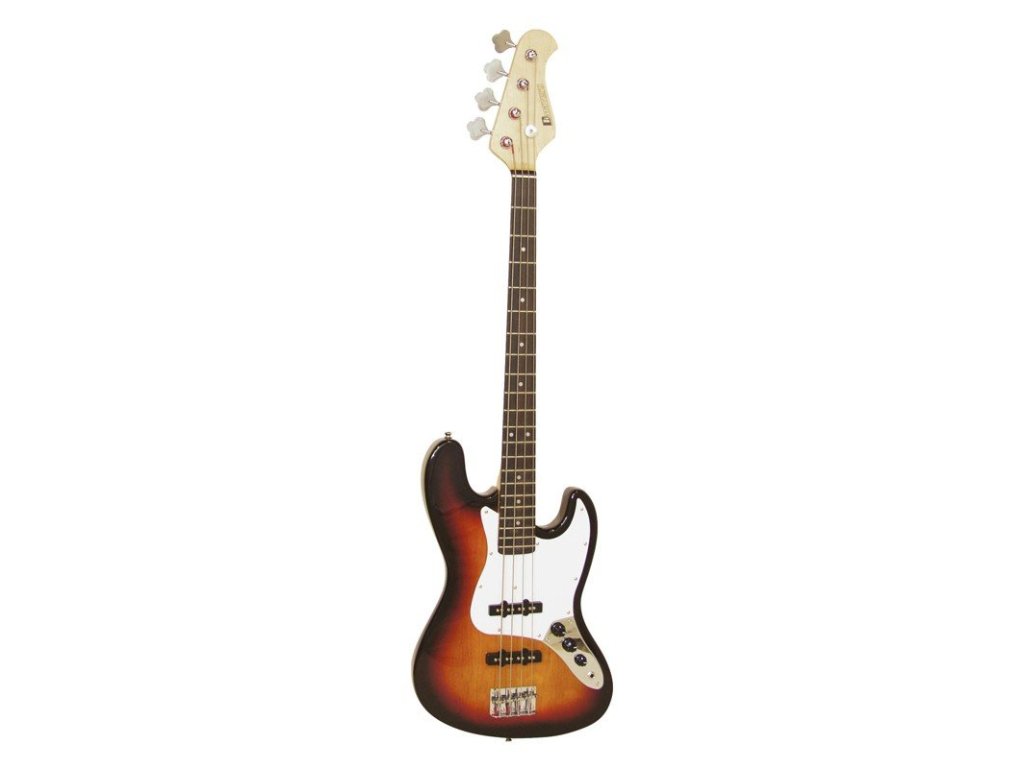 Gitara basowa typu JazzBass. Korpus lipowy, gryf klonowy, podstrunnica palisandrowa, 21 progów, przetworniki 2 x JB Single, sterowanie 2 x Volume, 1 x Tone, mostek typu JB, otwarta mechanika, chromowany osprzęt. Kolor sunburst.