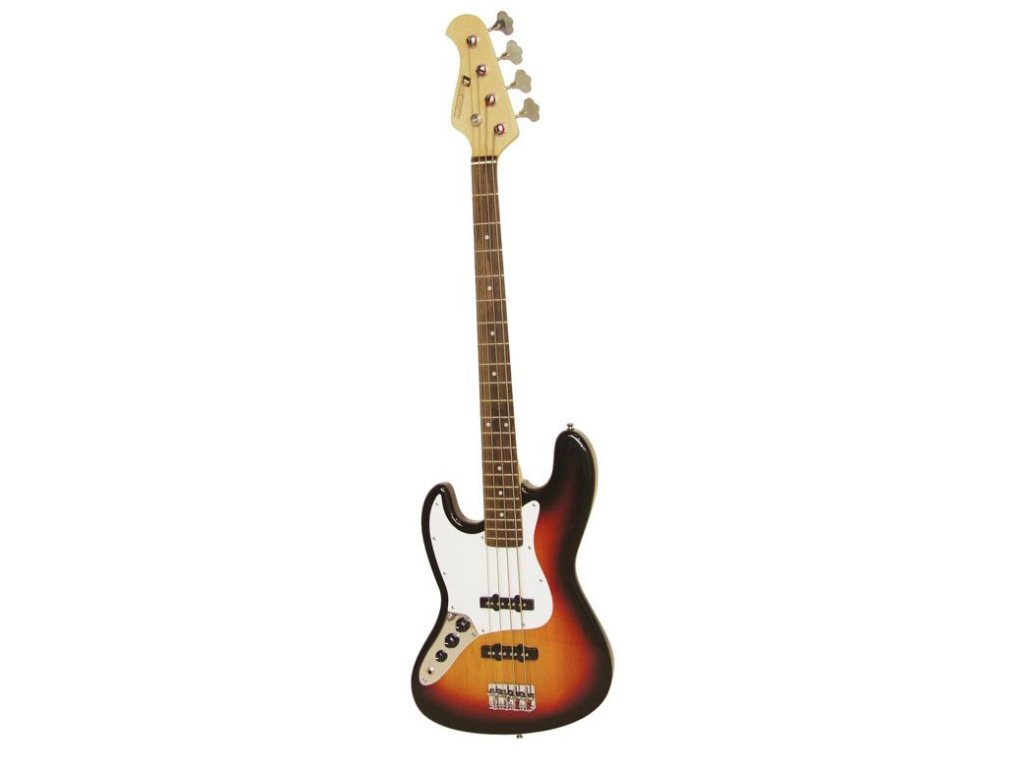 Gitara basowa typu JazzBass dla leworęcznych. Korpus lipowy, gryf klonowy, podstrunnica palisandrowa, 21 progów, przetworniki 2 x JB Single, sterowanie 2 x Volume, 1 x Tone, mostek typu JB, otwarta mechanika, chromowany osprzęt. Kolor sunburst.