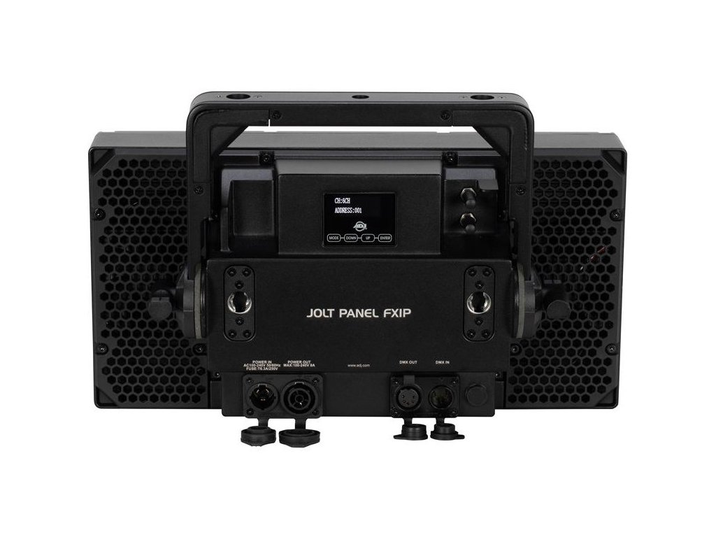 ADJ Lighting Jolt Panel FXIP to innowacyjny, wielofunkcyjny panel LED, który można wykorzystać jako stroboskop, panel wash lub urządzenie tworzące przyciągające wzrok efekty. Wyposażony jest w 800 diod RGB SMD LED o mocy 0,5 W do funkcji kolorowego stroboskopu, panelu wash i tworzenia przyciągających wzrok efektów, a także 48 białych diod SMD LED o mocy 5 W umieszczonych na środku panelu, które tworzą tradycyjny wygląd stroboskopu. Oba typy diod LED są zgrupowane w niezależne, sterowalne strefy (6 białych i 40 kolorowych), co pozwala na tworzenie przyciągających wzrok animowanych wzorów chase. Masywna moc świetlna panelu Jolt Panel FX2 została specjalnie zaprojektowana dla dużych scen, klubów nocnych, imprez na żywo i tras koncertowych.