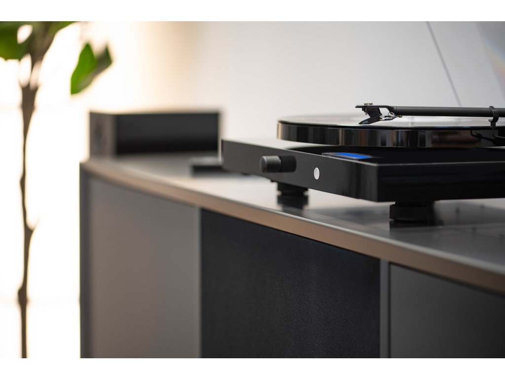 JUKE BOX E1 jako kompleksowy system muzyczny umożliwia również podłączenie innych komponentów przez wejście analogowe lub bezprzewodowo przez Bluetooth. Potrzebne dane są wyświetlane na wyświetlaczu, a wszystkim można wygodnie sterować za pomocą pilota. Ponadto, jeśli w przyszłości będziesz chciał korzystać z jukeboxa w połączeniu z oddzielnym przedwzmacniaczem gramofonowym, możesz użyć również bezpośredniego wyjścia sygnału phono. Aby podłączyć się do zintegrowanego wzmacniacza, wystarczy wybrać wyjście z liniowym poziomem sygnału. Projektanci naprawdę pomyśleli o wszystkich możliwych przyszłych sytuacjach.
