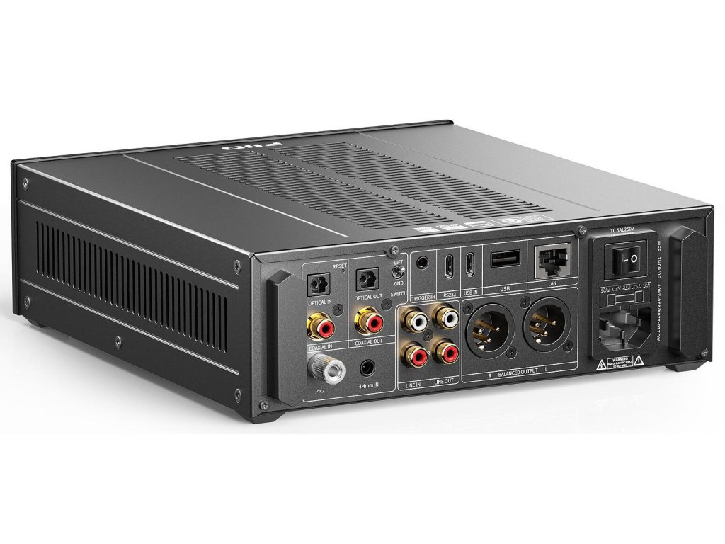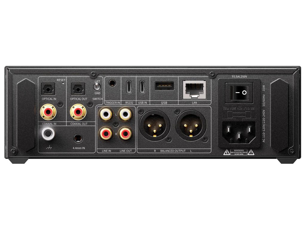 Praktycznie obudowa urządzenia wykonana jest z połączenia szkła i stopu aluminium. Z przodu znajduje się dotykowy wyświetlacz, 2 pokrętła, jedno do sterowania menu i jedno do głośności, oba podświetlane, przełączniki do włączania, wzmocnienia i wyjścia USB oraz wejścia słuchawkowe 6,35 mm, 4,4 mm i XLR4. Z tyłu znajduje się antena WiFi/Bluetooth, optyczne wejście i wyjście, przycisk reset, port uziemiający, port trigger 12V, port RS232, port USB i USB-A, port Ethernet, koaksjalne wejście i wyjście, symetryczne wejście liniowe 4,4 mm, niesymetryczne wejście i wyjście liniowe, symetryczne wyjście liniowe, zasilanie AC.
