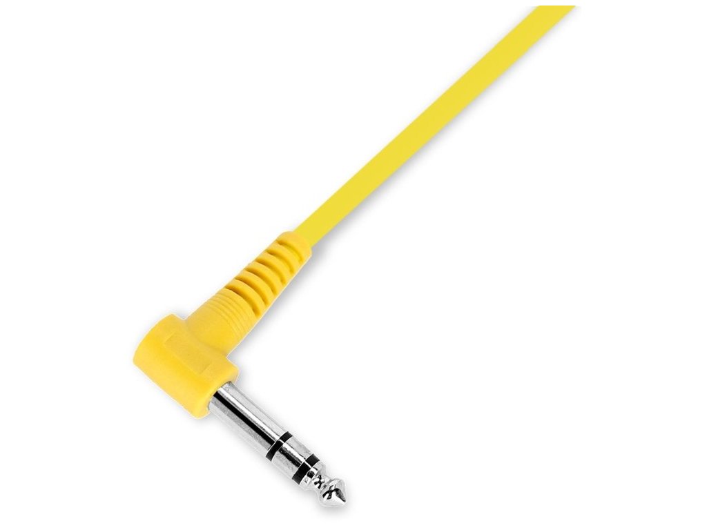 Zestaw kabli krosowych 6 różnych kolorowych kątowych Jack TRS. Kable krosowe w różnych kolorach z symetrycznym kierowaniem sygnału i stykami z niklowaną srebrną powłoką. Są bardzo elastyczne, co czyni je idealnymi do użytku na pedalboardach lub w racku. Mają standardowy przekrój przewodu wewnątrz o wielkości 0,22 mm² i są dostępne również z prostymi złączami jack.