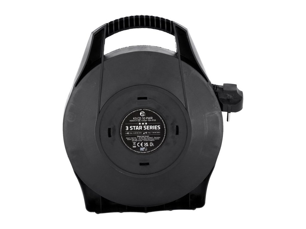 Ten mały i praktyczny zwijak kablowy jest wyposażony w 10 m kabla zasilającego z płaszczem z PVC (H05VV-F) i jest dostarczany z wewnętrznym przekrojem przewodów 3 x 1,5 mm². Ergonomiczny uchwyt i całkowita waga zaledwie 1,5 kg, a także solidna obudowa zwijaka sprawiają, że ten mały przyjaciel jest dobrym towarzyszem w codziennym życiu.