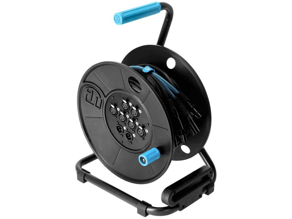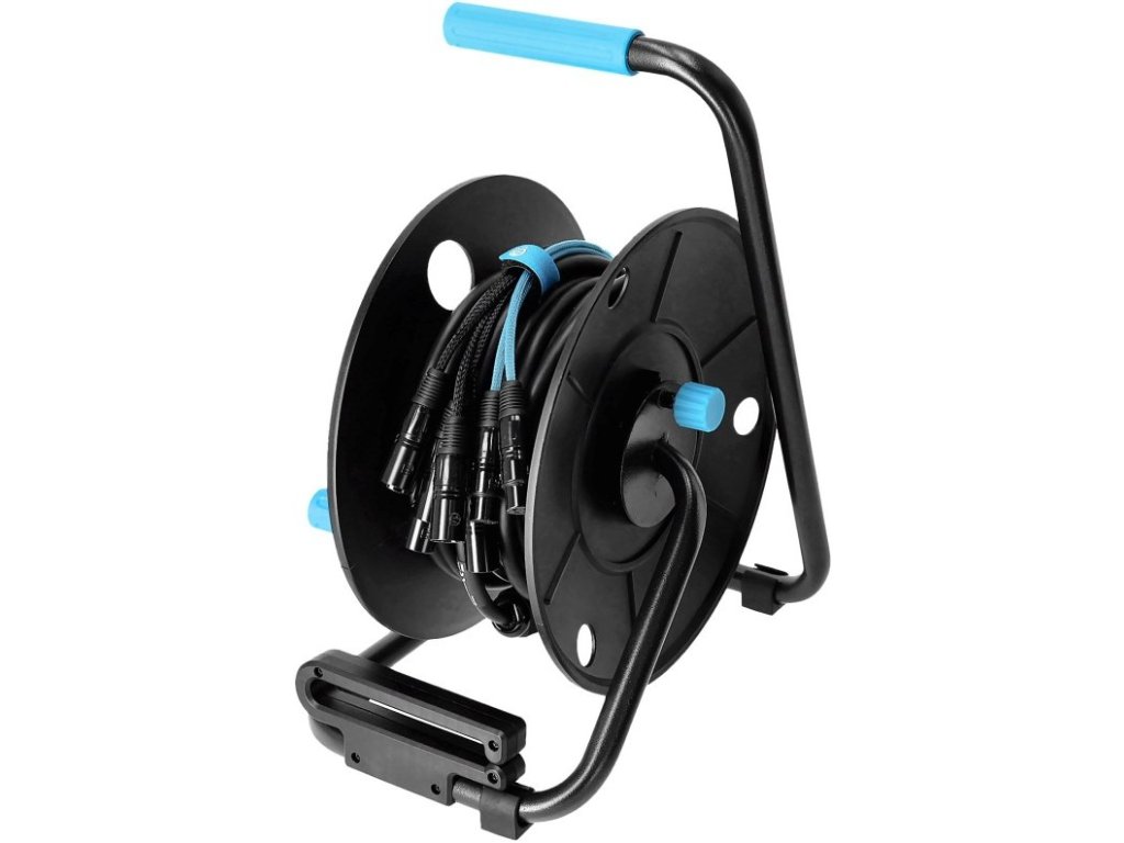 Ten wielożyłowy kabel audio z serii 4 STAR SERIES charakteryzuje się wytrzymałą powłoką PVC, oddzielnie ekranowanymi parami kabli oraz ekranowaniem całościowym i jest dostarczany na kompaktowym bębnie kablowym (4 STAR CD 042) ze zintegrowanym panelem przyłączeniowym. Bęben kablowy jest wyposażony w antypoślizgowe gumowe nóżki, które zapewniają dobrą przyczepność nawet na śliskiej powierzchni, oraz zdejmowaną prowadnicę kablową, która w znacznym stopniu zapobiega plątaniu się kabli i służy również jako odciążenie naciągu. Obrotowa korba jest idealna do zwijania bębna, dzięki czemu nie trzeba ciągle do niego sięgać. Z ergonomicznym uchwytem z twardej gumy.
