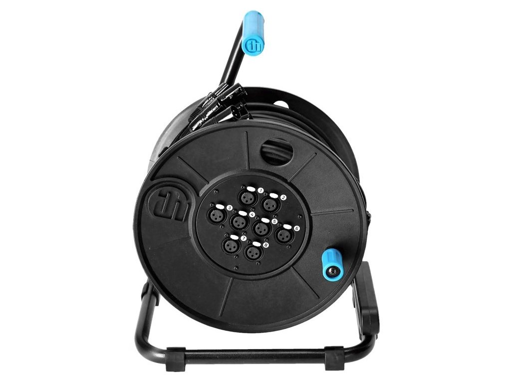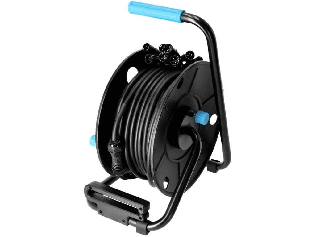 Ten wielożyłowy kabel audio z serii 4 STAR SERIES charakteryzuje się wytrzymałą powłoką PVC, oddzielnie ekranowanymi parami kabli oraz ekranowaniem całościowym i jest dostarczany na kompaktowym bębnie kablowym (4 STAR CD 042) ze zintegrowanym panelem przyłączeniowym. Bęben kablowy jest wyposażony w antypoślizgowe gumowe nóżki, które zapewniają dobrą przyczepność nawet na śliskiej powierzchni, oraz zdejmowaną prowadnicę kablową, która w znacznym stopniu zapobiega plątaniu się kabli i służy również jako odciążenie naciągu. Obrotowa korba jest idealna do zwijania bębna, dzięki czemu nie trzeba ciągle do niego sięgać. Z ergonomicznym uchwytem z twardej gumy.