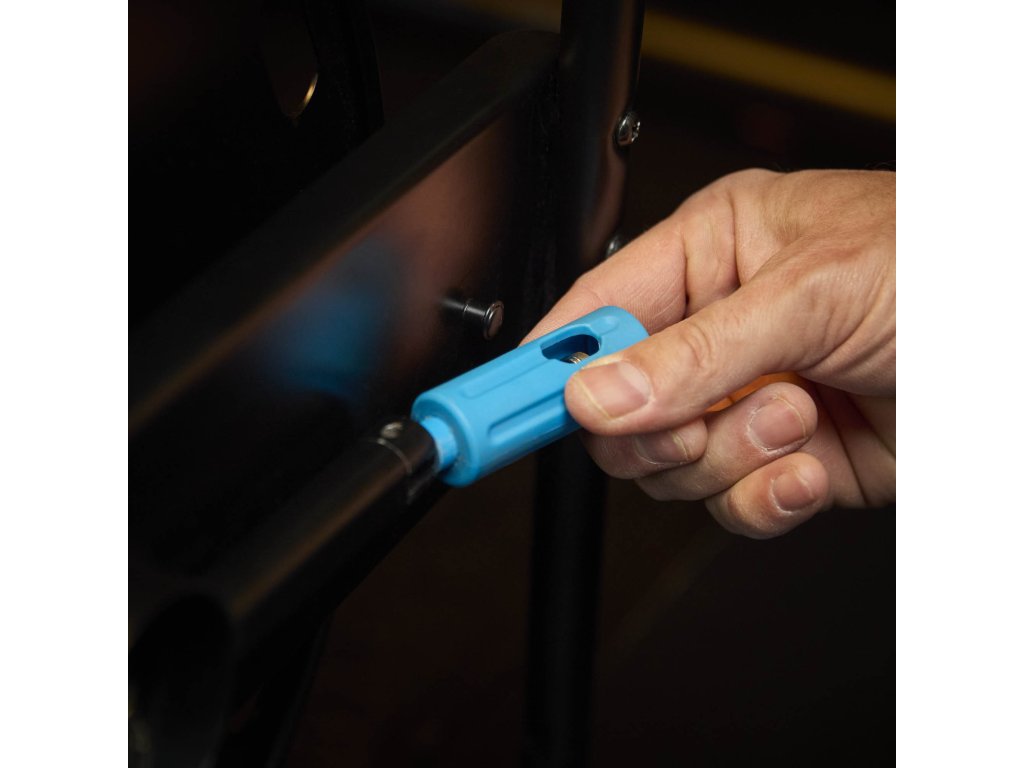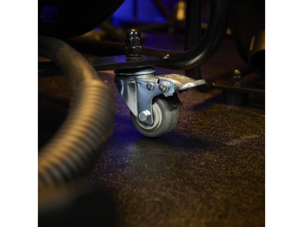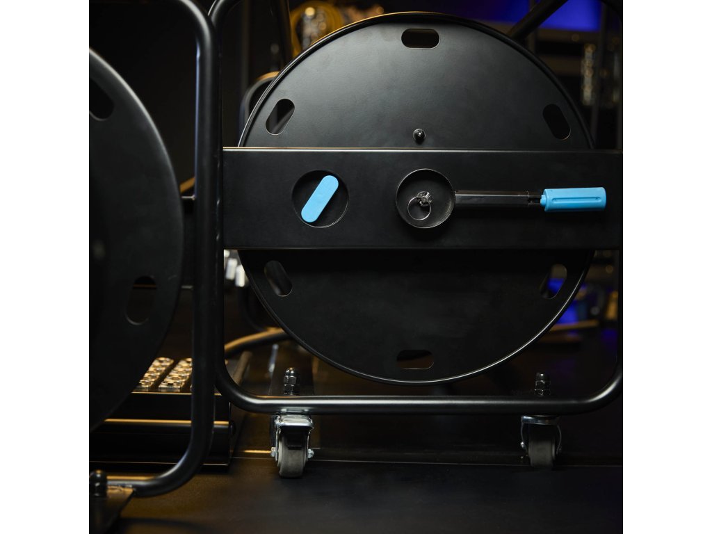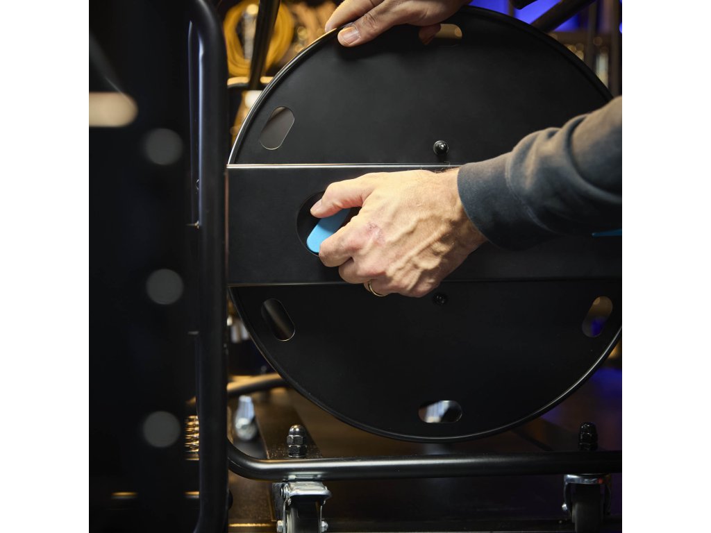 Bezpieczne mocowanie kabla: Wyposażony w otwory po bokach do bezpiecznego mocowania kabla za pomocą rzepu, co zapobiega jego ześlizgiwaniu się. Dodatkowo obrotowy hamulec postojowy gwarantuje bezpieczne ustawienie podczas użytkowania.