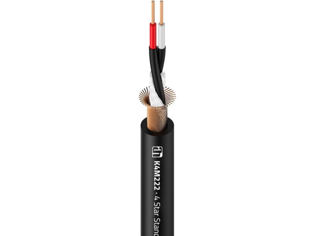 K4M222 z serii "Standard" to wysokiej jakości kabel mikrofonowy do symetrycznego przesyłania sygnałów niskoimpedancyjnych. Charakteryzuje się podwójnym ekranowaniem (spiralny ekran miedziany plus półprzewodnik), które zapobiega zakłóceniom elektromagnetycznym i wysokoczęstotliwościowym oraz redukuje szumy manipulacyjne - dla dobrych właściwości transmisyjnych bez szumów. Kabel wykonany jest z dwóch skręconych, cienko żyłowych przewodów miedzianych OFC, które zapewniają skuteczne tłumienie niesymetryczne. Dzięki mocnemu i wytrzymałemu oplotowi PVC o wysokiej wytrzymałości, elastyczności i odporności na ścieranie kabel K4M222 nadaje się do wszystkich zastosowań, od występów na żywo po pracę w studio i nagrywanie w domu.