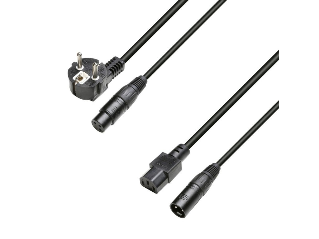 Kabel zasilający i audio CEE7 / 7 & XLR żeński do C13 & XLR męski 3x1.5mm². Długość 5m.