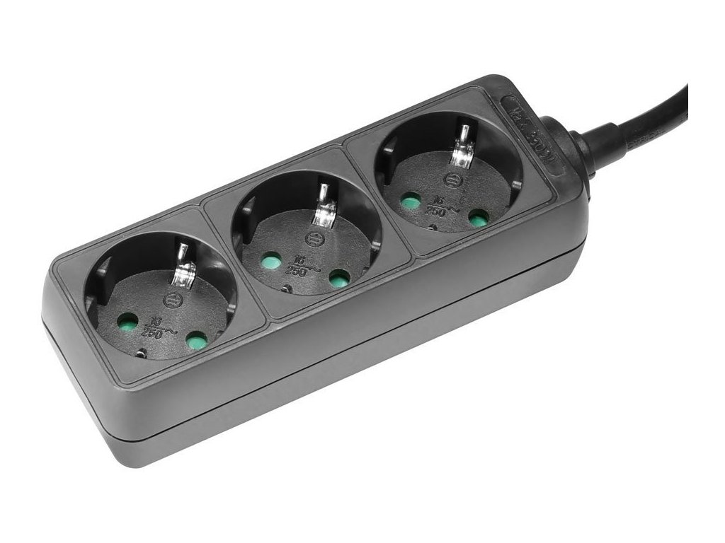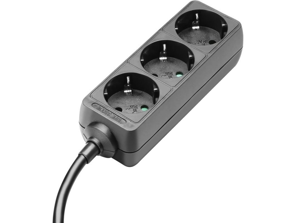 Model 8747X3 jest wyposażony w trzy uziemione gniazda typu F i kabel zasilający o długości 3 m, co zapewnia większy zasięg i elastyczność.