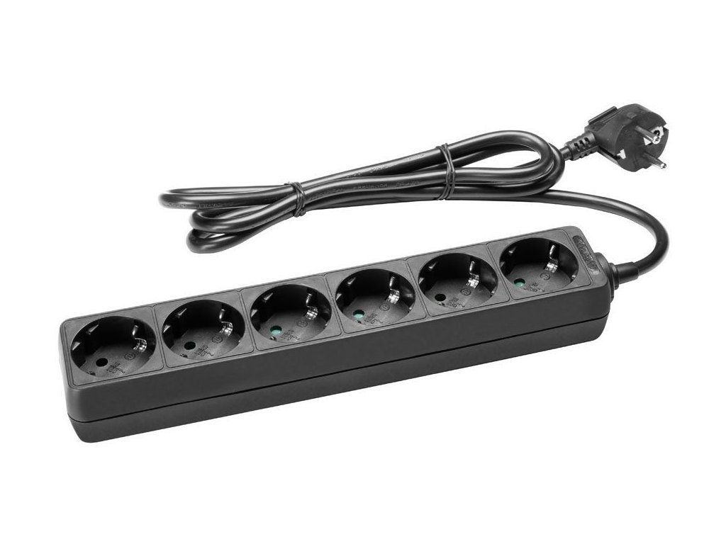 Model 8747X6 jest wyposażony w sześć uziemionych gniazd typu F i kabel zasilający o długości 1,4 m, co zapewnia większy zasięg i elastyczność.