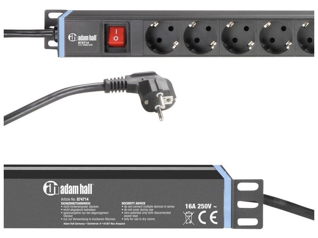Listwa zasilająca z długim (3m) kablem do 14 urządzeń. 12 gniazd bezpieczeństwa i 2 gniazda IEC. (nie 19")