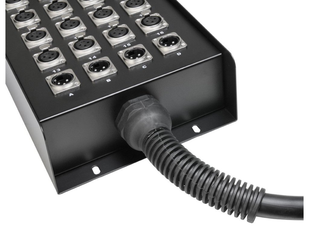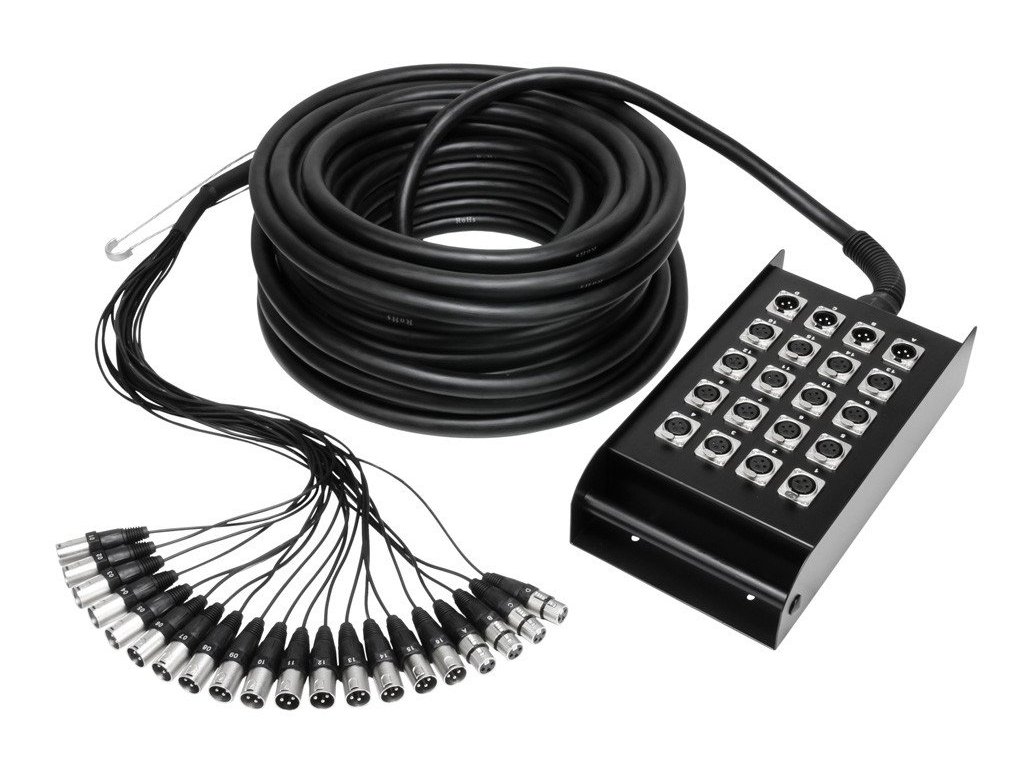 Wysokiej jakości kabel wielożyłowy ze stage boxem, wyposażony w metalowe złącza XLR. Długość 30 m.