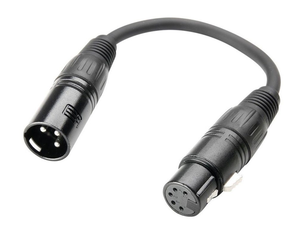Adapter DMX XLR 5-pinowe złącze na złącze XLR 3-pinowe. Długość 0,2 m.