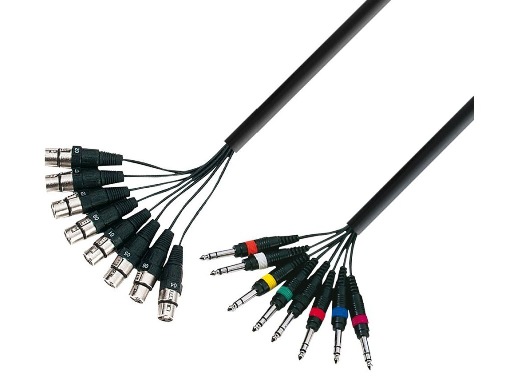 Kabel Multicore 8 x XLR żeńskie na 8 x 6.3 mm Jack stereo. Długość 3 m.