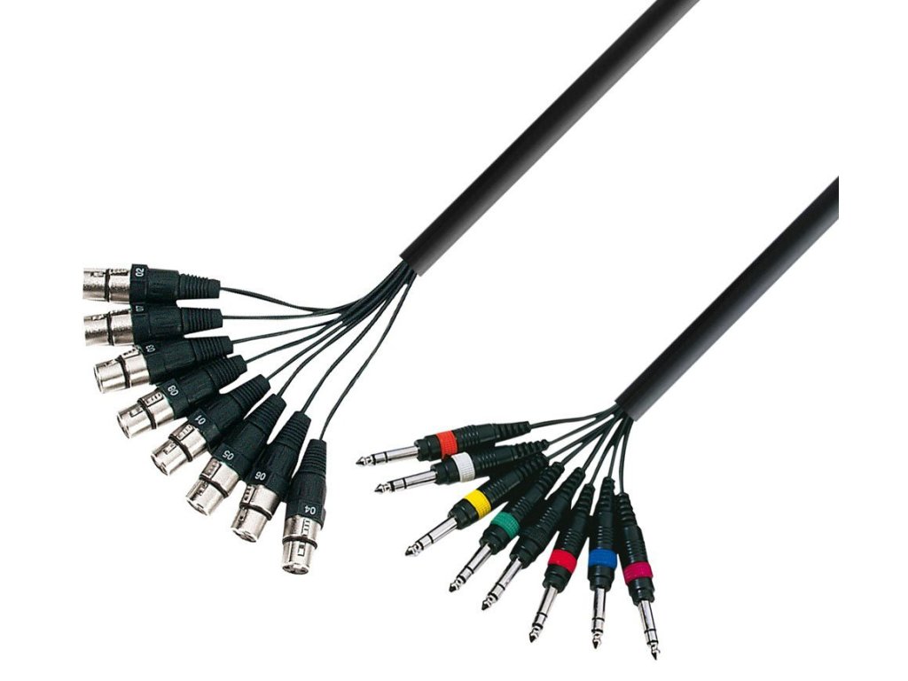 Kabel Multicore 8 x XLR żeńskie na 8 x 6.3 mm Jack stereo. Długość 5 m.
