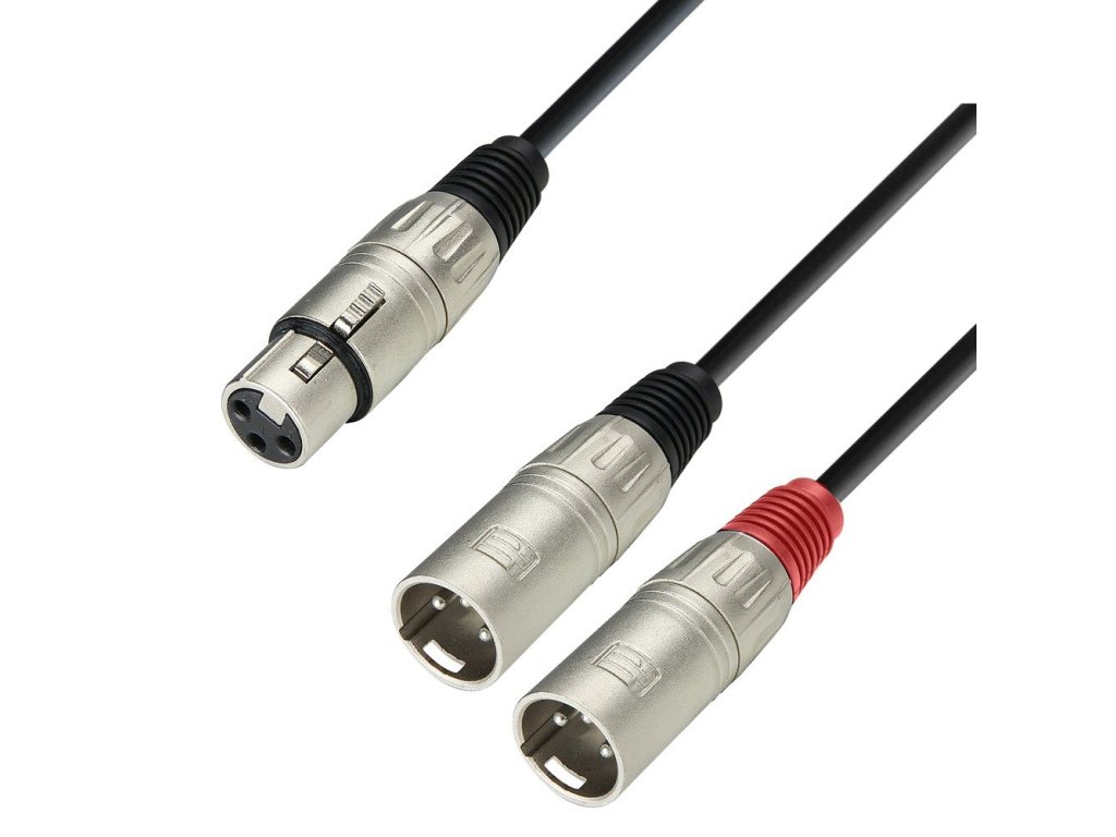 Kabel audio XLR żeński na 2 x XLR męski. Długość 1 m. Wysokiej jakości stereofoniczny kabel audio z wytrzymałymi złączami XLR. Wyraźne oznaczenie kanałów za pomocą kolorowych pierścieni i wysokiej jakości materiał kabli predysponują ten kabel do zastosowań studyjnych lub ambitnych hi-fi.