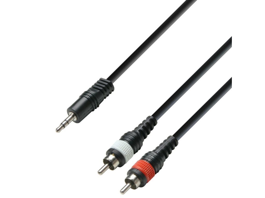 Kabel audio 3.5 mm Jack stereo na 2 x RCA male. Długość 1 m.