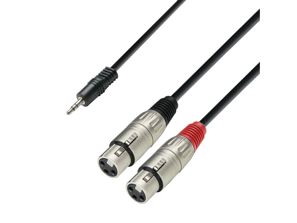 Kabel audio 3,5 mm stereo jack na 2x XLR żeński. Długość 3 m. Wysokiej jakości kabel audio z wytrzymałymi złączami XLR i stereo jack. Wysokiej jakości materiał kabli predysponuje je do zastosowań studyjnych lub ambitnych hi-fi.