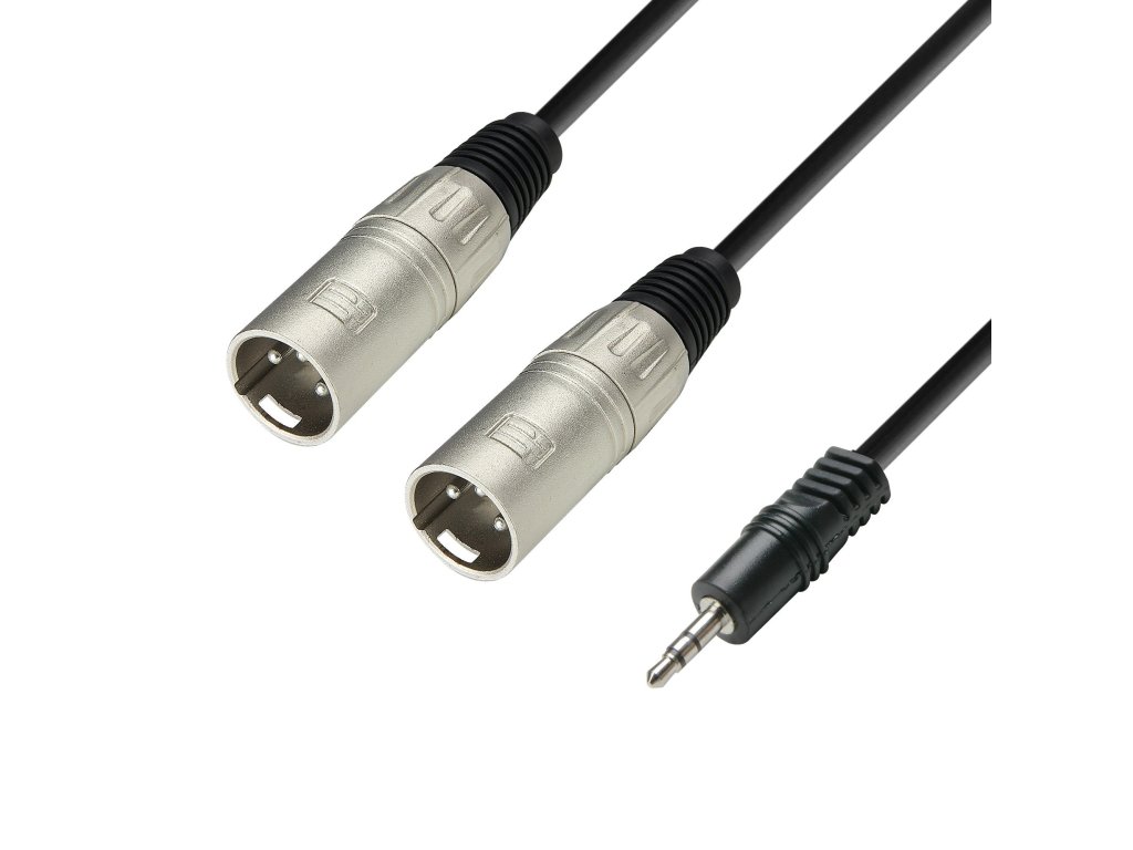 Kabel audio 3,5 mm stereo jack na 2x XLR male. Długość 1 m. Wysokiej jakości kabel audio z wytrzymałymi złączami XLR i złączem stereo jack. Czytelne oznaczenie kanałów za pomocą kolorowych pierścieni i wWysokiej jakości materiał kabli predysponuje je do zastosowań studyjnych lub ambitnych hi-fi.