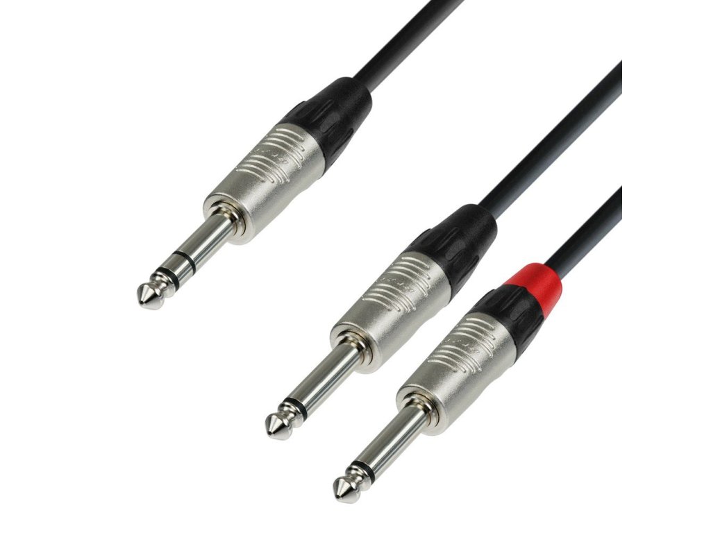 Kabel audio z wtyczką REAN 6.3 mm Jack stereo na 2 x 6.3 mm Jack mono. Długość 1.5 m.