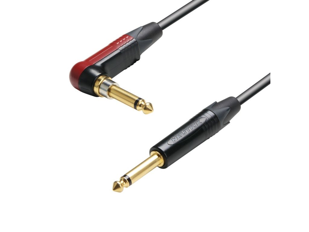 Kabel instrumentalny z wtykiem Neutrik silent PLUG 6.3 mm kątowy Jack mono na 6.3 mm Jack mono. Długość 6 m.