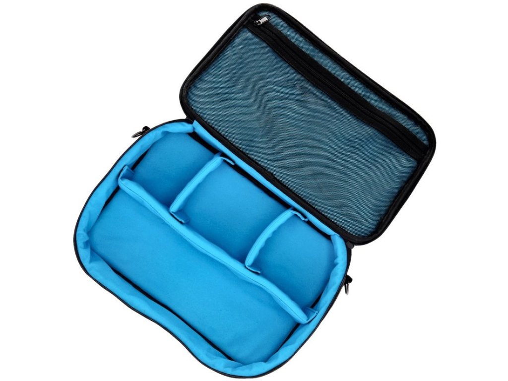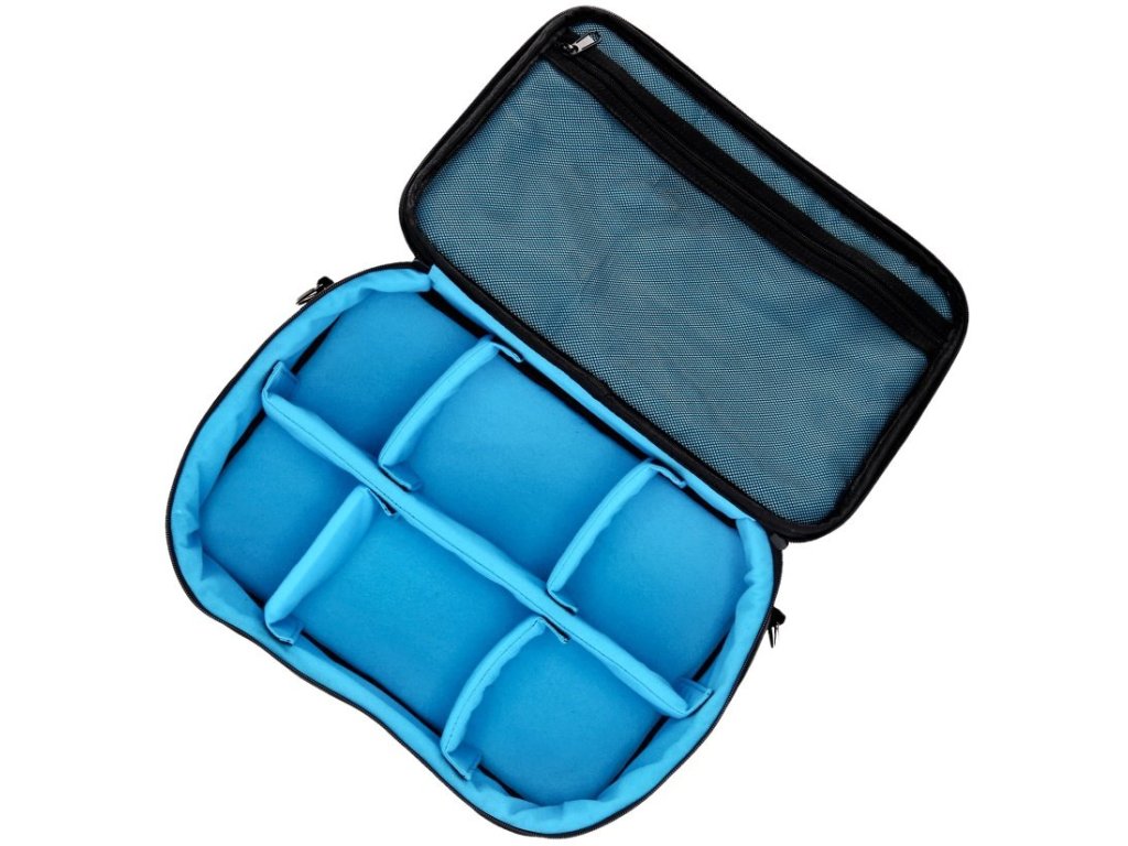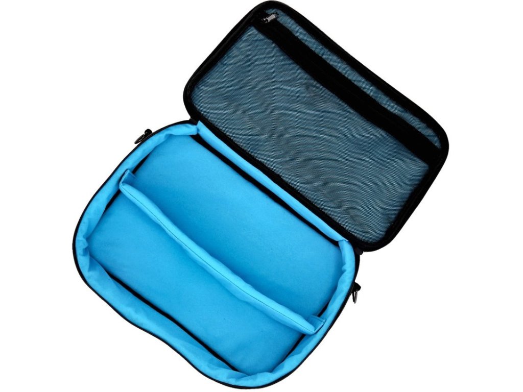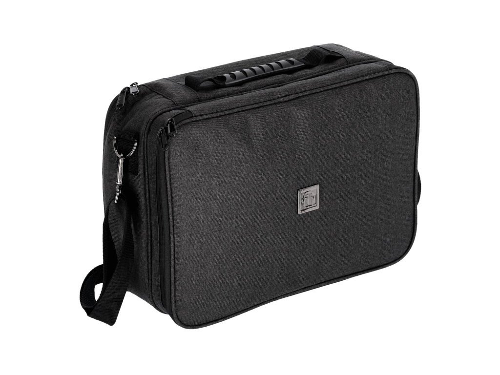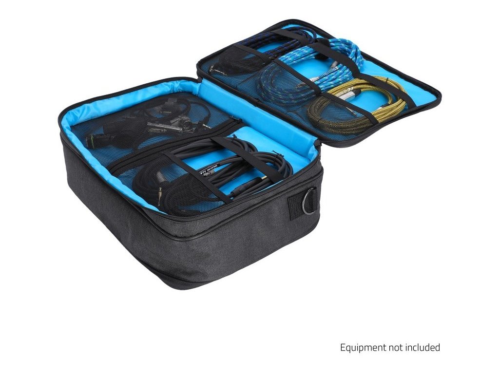 Przednia przegroda składa się z trzech siatkowych kieszeni z elastycznymi paskami specjalnie wykonanymi do kabli i dodatkowej kieszeni na dłuższe kable. Dodatkowo znajduje się tutaj siatkowa kieszeń na zamek błyskawiczny do przechowywania np. tabletu, tunera itp. Tylna część oferuje wystarczająco dużo miejsca na 6 pedałów (np. Palmer Pocket Amp), listwy zasilające, a nawet nuty, jednostki multiefektowe i powerbanki. Kreatywność jest tutaj ograniczona tylko przestrzennie. Dodatkowo, za pomocą dołączonych przegródek, można doskonale uporządkować swój repertuar drobnych części.
