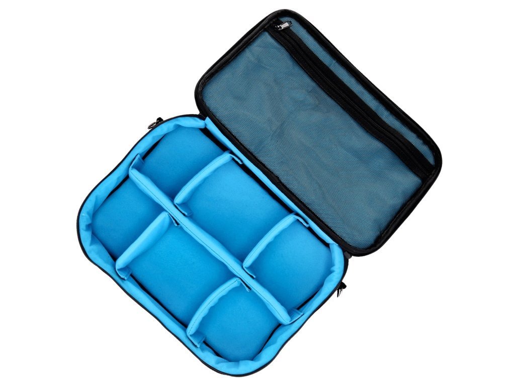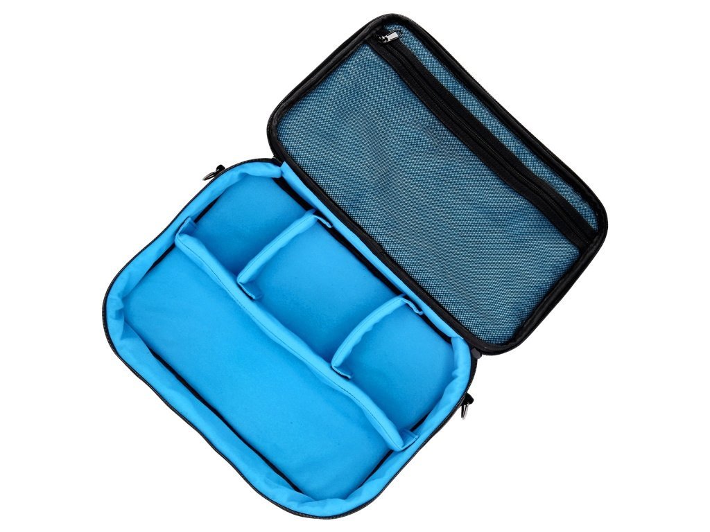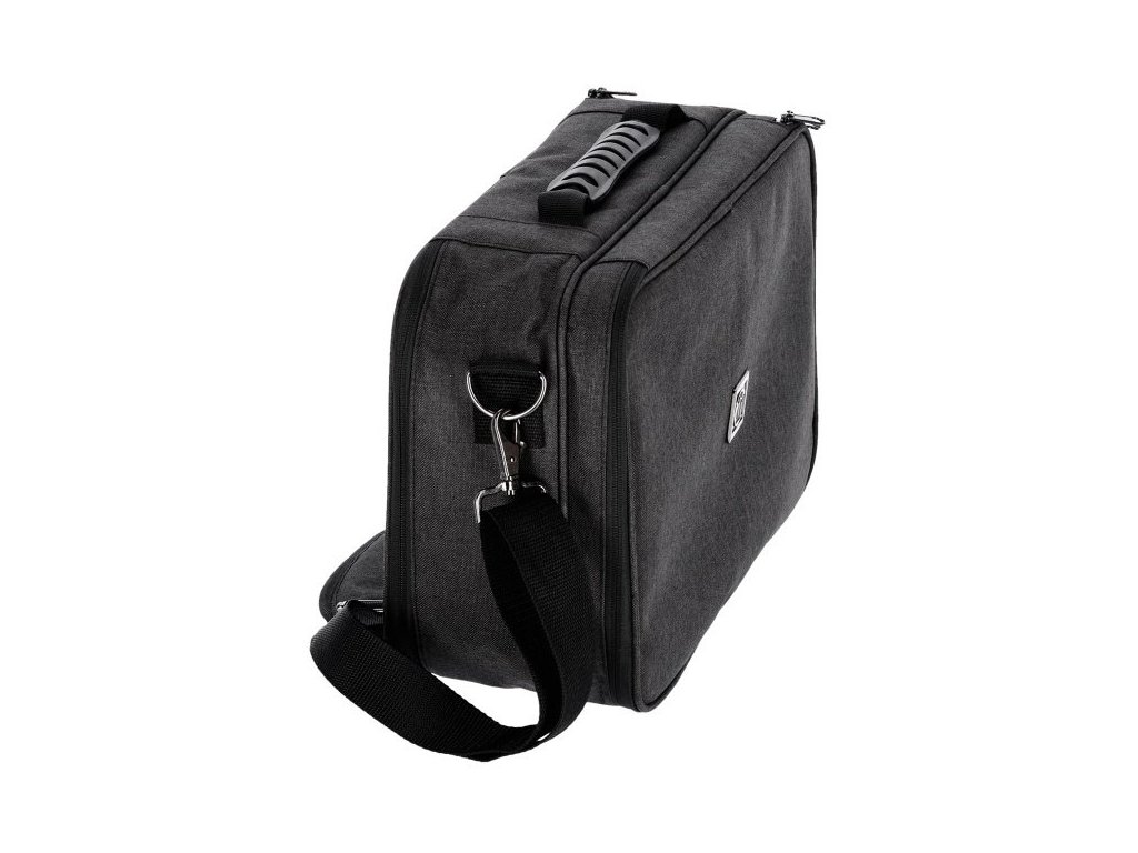 Przednia przegroda składa się z trzech siatkowych kieszeni z elastycznymi paskami specjalnie wykonanymi do kabli i dodatkowej kieszeni na dłuższe kable. Dodatkowo znajduje się tu również siatkowa kieszeń na zamek błyskawiczny do przechowywania np. tabletu, tunera itp. Tylna część oferuje wystarczająco dużo miejsca na 6 pedałów (np. Palmer Pocket Amp), listwy zasilające, a nawet nuty, jednostki multiefektowe i powerbanki. Kreatywność jest tutaj ograniczona tylko przestrzennie. Ponadto istnieje możliwość, za pomocą dostarczonych przegródek, uzyskania doskonałego porządku w swoim repertuarze drobnych części.