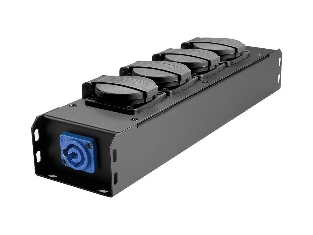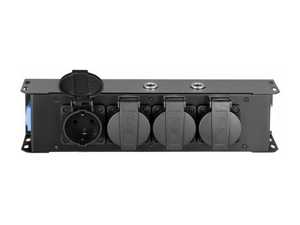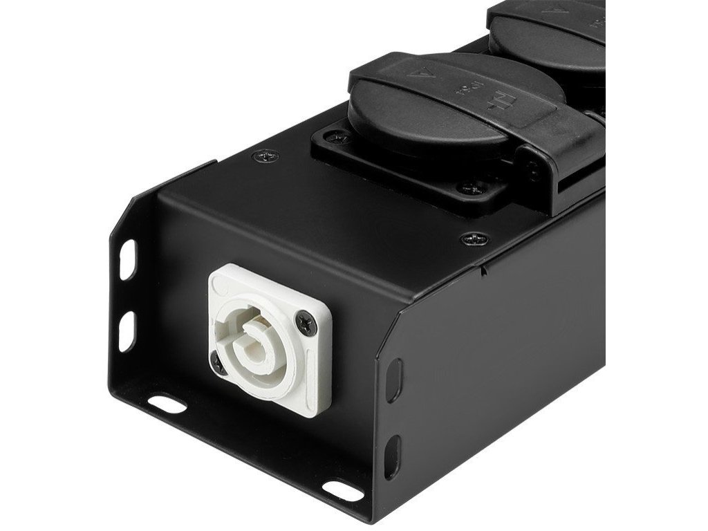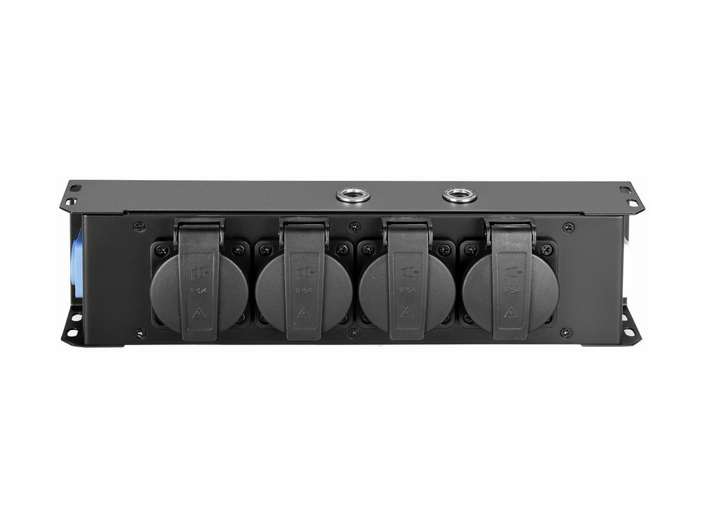 - Dodatkowe funkcje: 2 wkładki M10, gumowa osłona, dystrybucja energii na scenach i w zestawach transmisyjnych