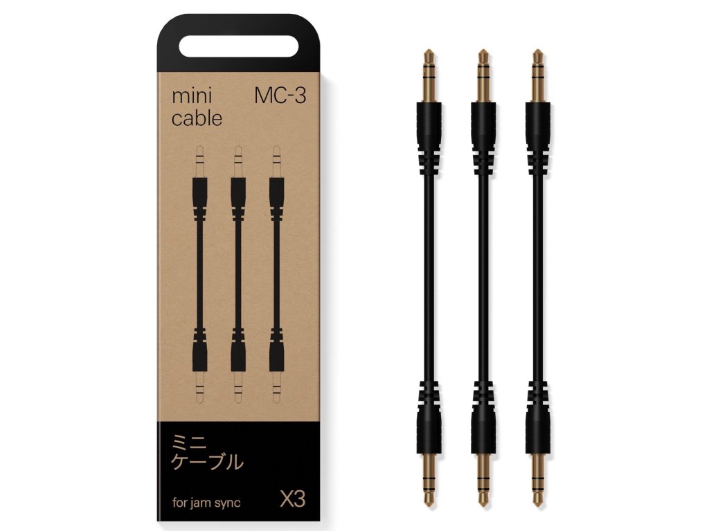 Zestaw trzech kabli połączeniowych z pozłacanymi wtykami jack 3,5 mm do kieszonkowych syntezatorów Pocket Operator firmy Teenage Engineering.