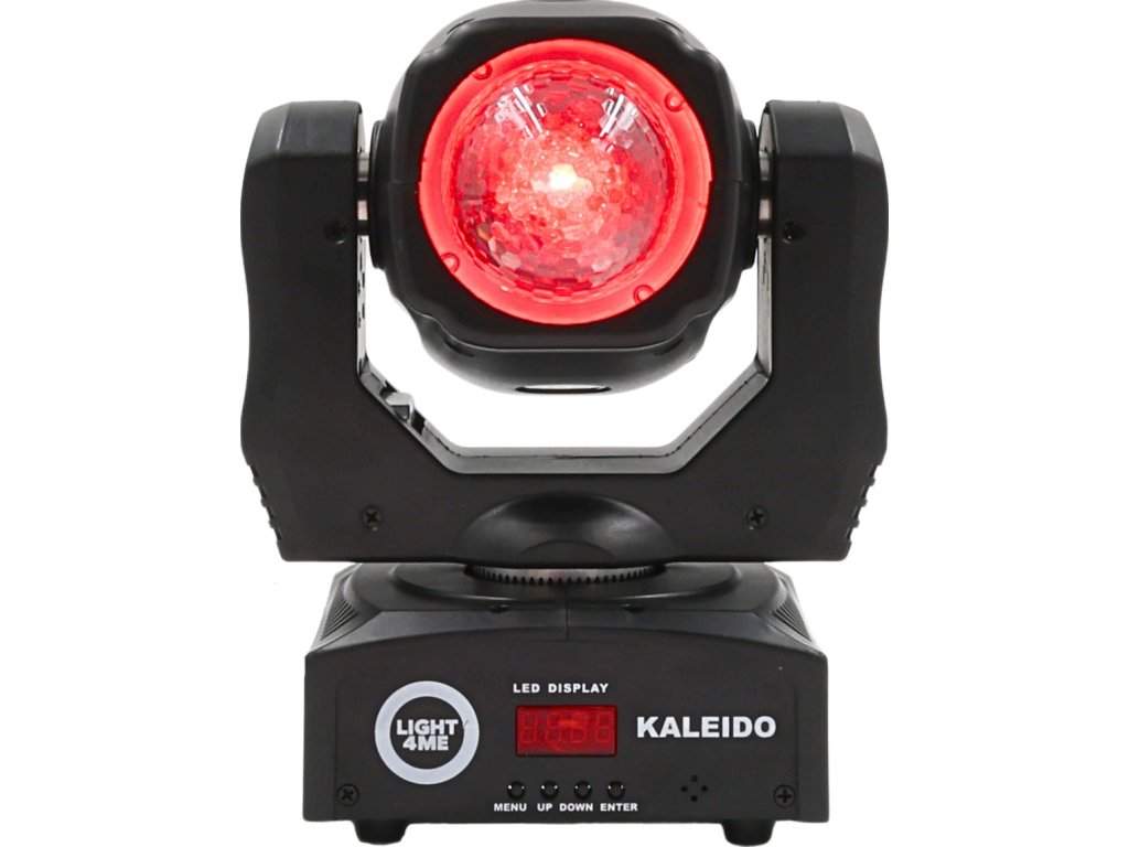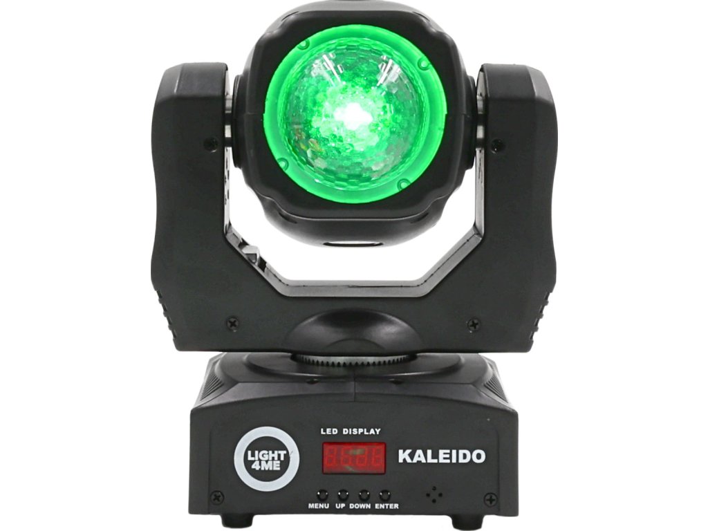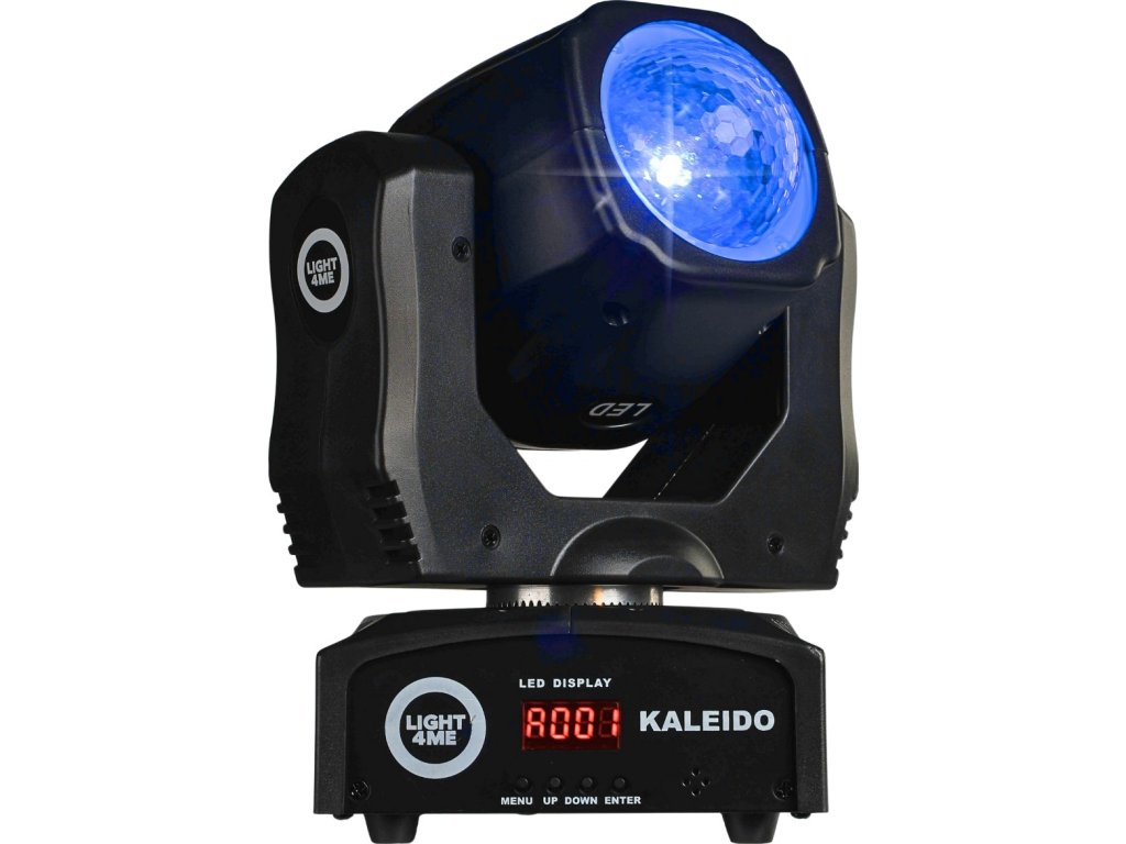 Odkryj niezwykle efektowne widowisko świetlne, które całkowicie odmieni Twoje występy i wydarzenia Light4Me Kaleido to nowoczesna obrotowa głowica FX LED, która łączy dynamiczne ruchy, nasycone kolory RGBW oraz efekt kalejdoskopu, tworząc unikalne iluminacje sceniczne. Dzięki kątowi świecenia 127° i wydajnemu źródłu światła LED 10W 4w1 zapewnia intensywne i równomierne oświetlenie w klubach, salach weselnych, podczas eventów i wielu innych.
