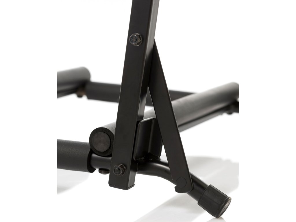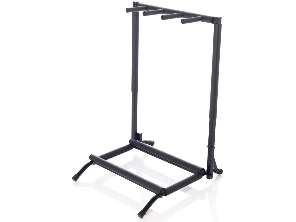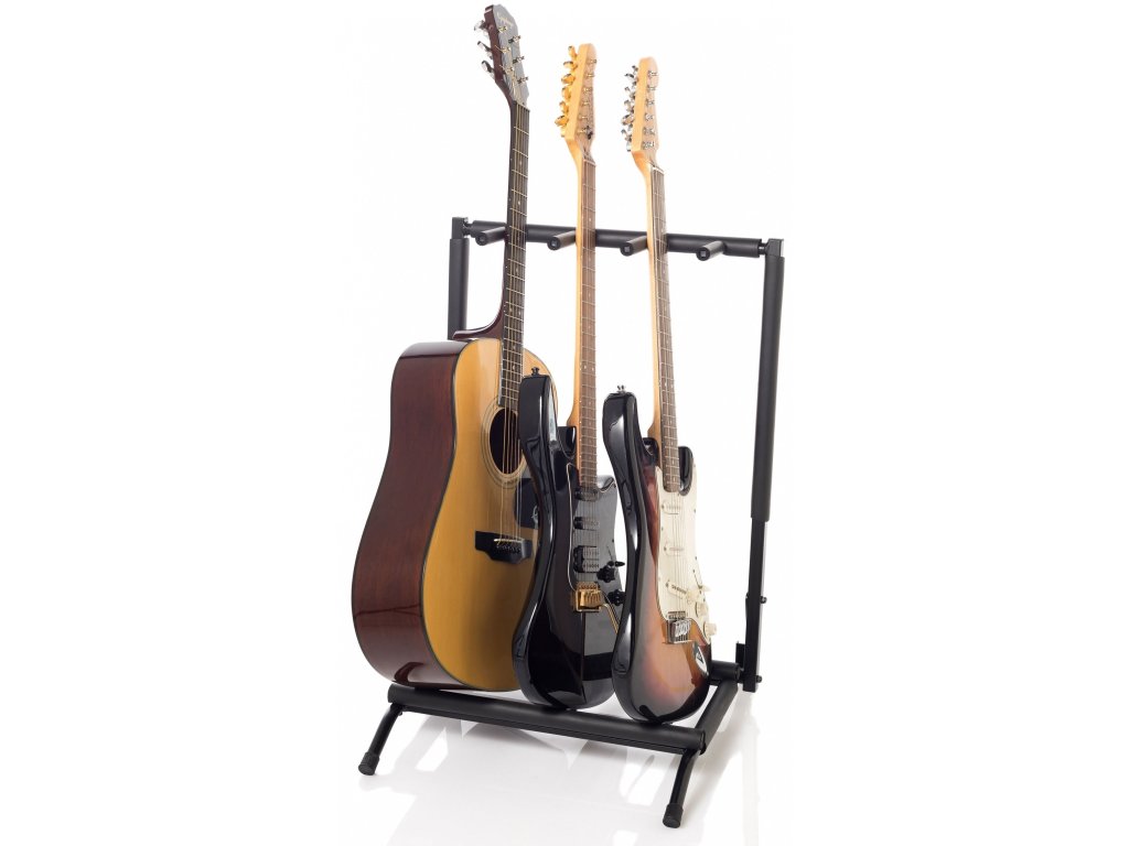 Stojak o solidnej metalowej konstrukcji na trzy gitary elektryczne lub około dwie gitary akustyczne/basowe firmy Bespeco. Części stykające się z instrumentami są pokryte gumowaną warstwą, aby zapobiec uszkodzeniu lakieru gitar. Stabilność stojaka gwarantuje podstawa na czterech nogach. Po złożeniu zajmuje minimalną ilość miejsca, dzięki czemu idealnie nadaje się do użytku w domu, jak również do grania na żywo związanego z podróżowaniem i maksymalizacją przestrzeni ładunkowej w bagażniku samochodu, dostawczaka lub przyczepy.