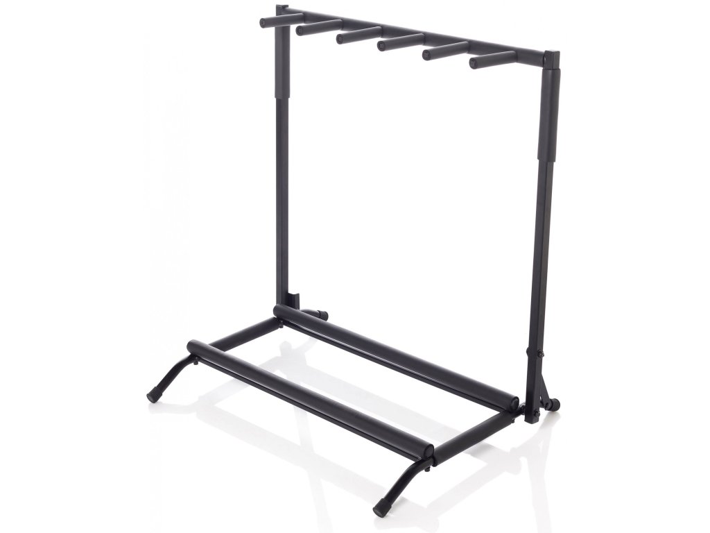 Stojak o solidnej metalowej konstrukcji na pięć gitar elektrycznych (czyli około trzech akustycznych) gitar/basów firmy Bespeco. Części stykające się z instrumentami są pokryte gumowaną warstwą, aby zapobiec uszkodzeniu lakieru gitar. Stabilność stojaka gwarantuje podstawa na czterech nogach. Po złożeniu zajmuje minimalną ilość miejsca, dzięki czemu idealnie nadaje się do użytku w domu, jak również do grania na żywo związanego z podróżowaniem i maksymalizacją przestrzeni ładunkowej w bagażniku samochodu, dostawczaka lub przyczepy.