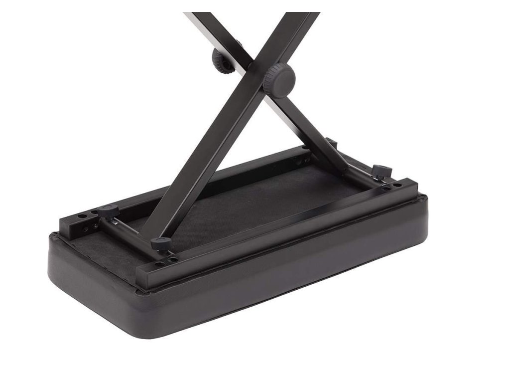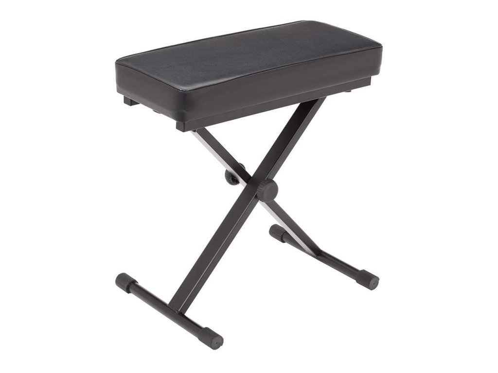 Solidny stołek do pianina ze stalową konstrukcją, wyściełanym siedziskiem z skórzanym obiciem i regulowaną wysokością (5 pozycji; 490 – 580 mm). Dzięki uniwersalnemu designowi pasuje do każdego wnętrza i można go używać zarówno z klasycznym fortepianem lub pianinem, jak i z klawiszami. Nie brakuje gumowych końcówek, które utrzymują stołek na miejscu i chronią podłogę oraz instrument przed uszkodzeniem.