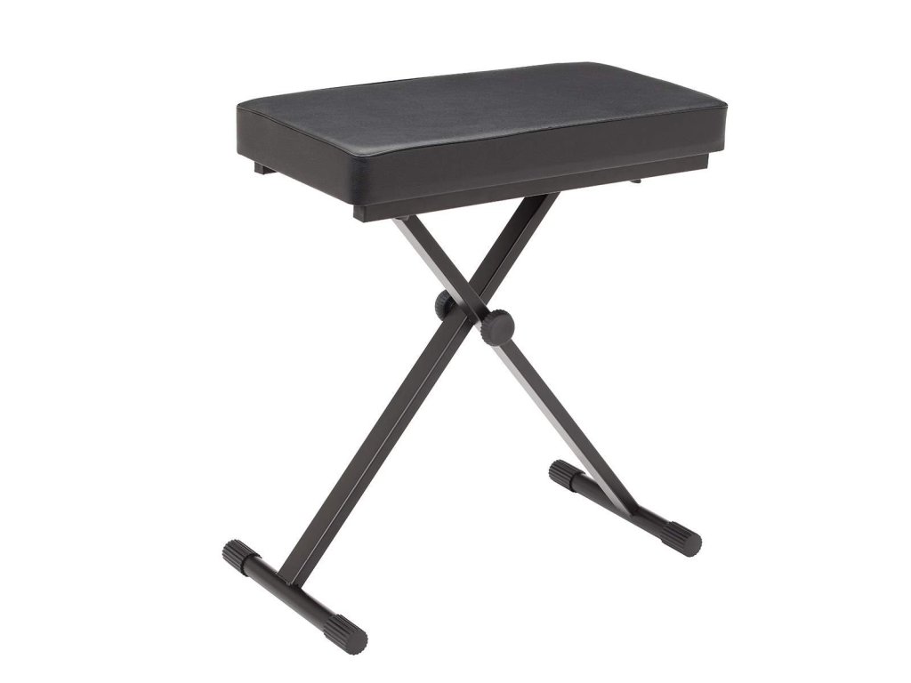 Solidny stołek fortepianowy ze stalową konstrukcją, wyściełanym siedziskiem z powłoką skórzaną i regulowaną wysokością (5 pozycji; 550 – 690 mm). Dzięki uniwersalnemu designowi pasuje do każdego wnętrza i można go używać zarówno z klasycznym fortepianem lub pianinem, jak i z klawiszami. Nie brakuje gumowych końcówek, które utrzymują stołek na miejscu i chronią podłogę oraz instrument przed uszkodzeniem.