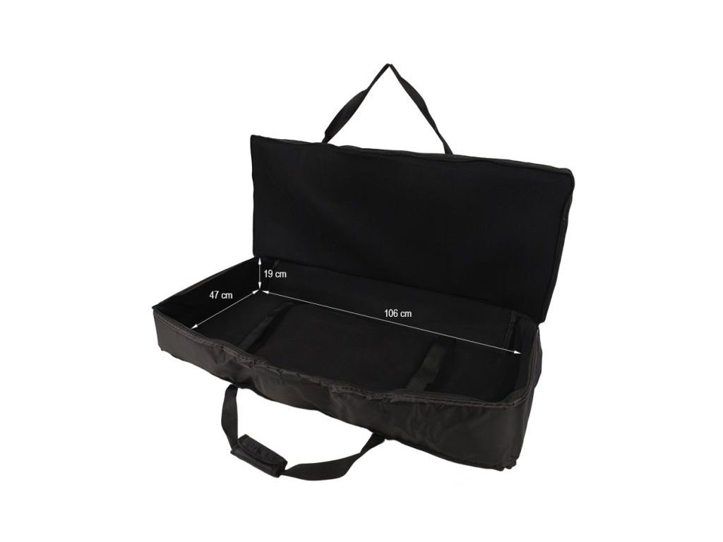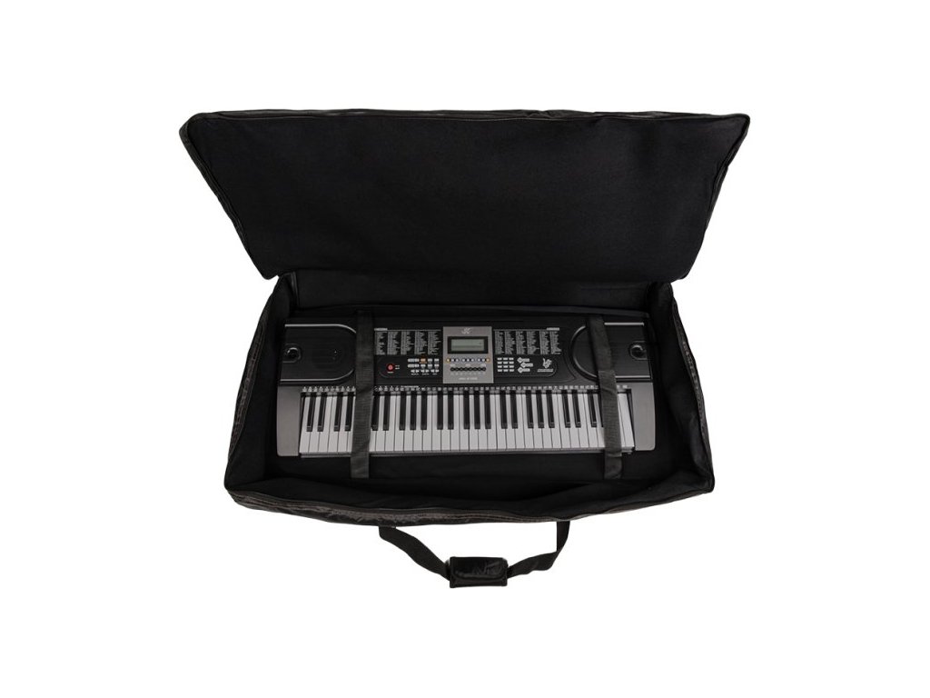 V-tone KB106 to ergonomiczny, czarny futerał na klawiaturę, przeznaczony do bezpiecznego przechowywania i transportu instrumentu. Torba wykonana jest z mocnej tkaniny nylonowej, odpornej na wilgoć, kurz i rozerwanie. Podwójne ścianki wypełnione są wzmacniającą gąbką techniczną i wewnątrz pokryte aksamitną powłoką na poduszce. Dodatkowe paski mocujące z rzepem zapewniają, że instrument jest wystarczająco chroniony wewnątrz torby.