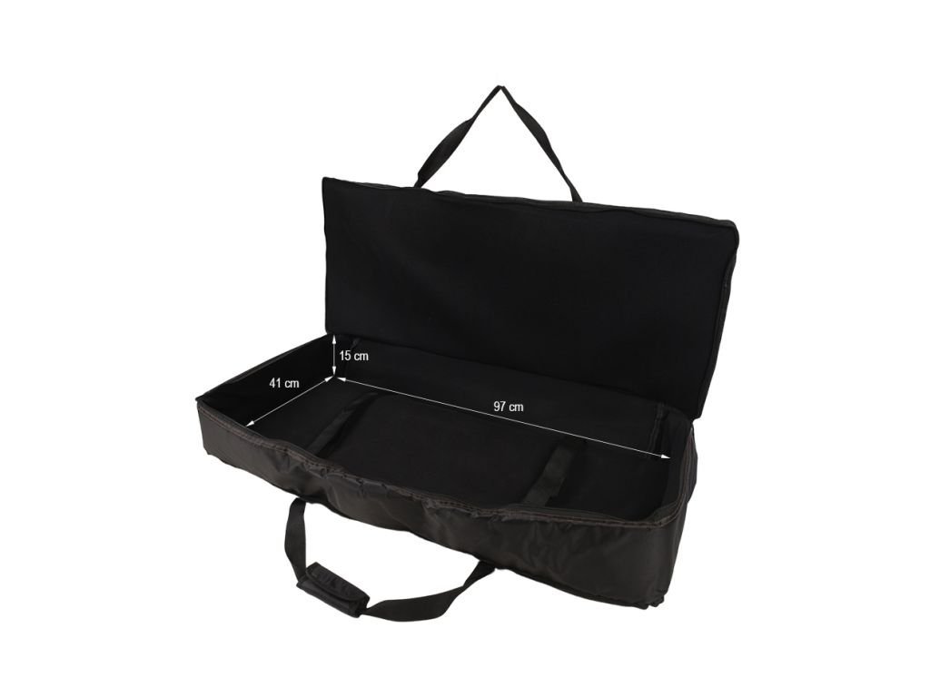 V-tone KB97 to ergonomiczny, czarny futerał na klawiaturę, przeznaczony do bezpiecznego przechowywania i transportu Twojego instrumentu. Torba wykonana jest z mocnej tkaniny nylonowej, odpornej na wilgoć, kurz i rozerwanie. Podwójne ścianki wypełnione są wzmacniającą gąbką techniczną i wewnątrz pokryte aksamitną powłoką na poduszce. Dodatkowe paski mocujące z rzepem zapewniają, że instrument jest wystarczająco chroniony wewnątrz torby.