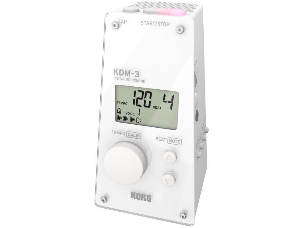 Seria KORG KDM słynie z dużej głośności i wyraźnie słyszalnego dźwięku. Z dumą prezentujemy najnowszy model KDM-3 z zupełnie nowymi właściwościami i wyglądem. Oprócz atrakcyjnego kształtu, który przypomina miniaturowy metronom mechaniczny, zawiera również bogatą ofertę patternów rytmicznych i dźwięków metronomu. Ponadto jest wyposażony w wygodne funkcje, których oczekujesz od metronomu cyfrowego i wspiera Twój występ w każdej sytuacji, niezależnie od gatunku lub instrumentu.
