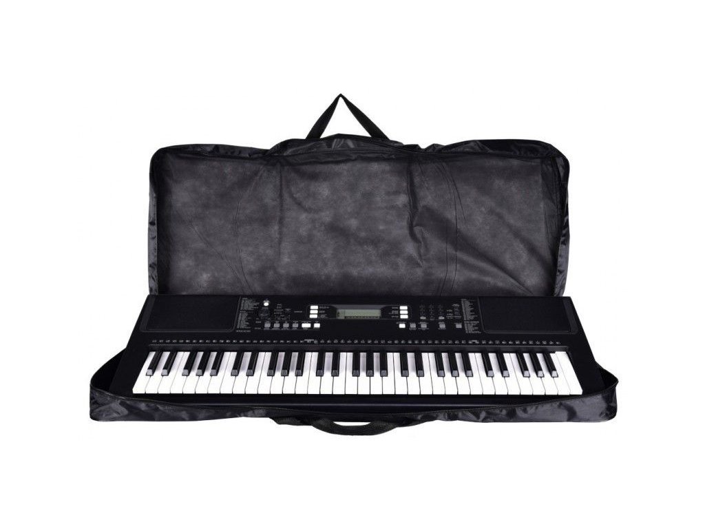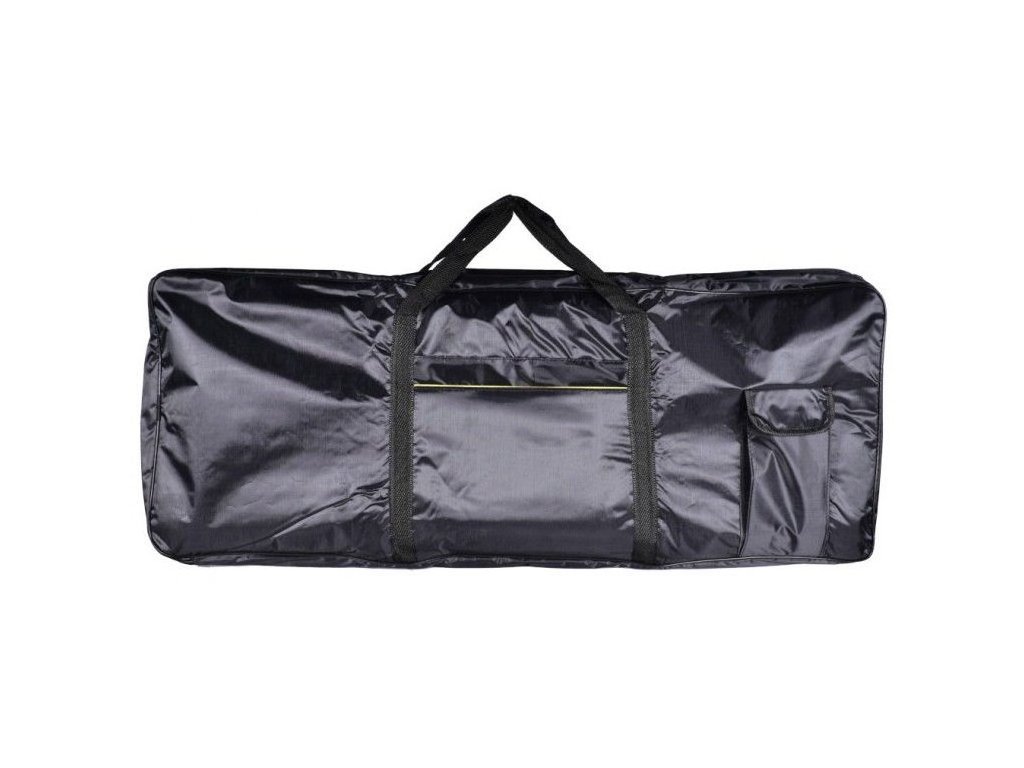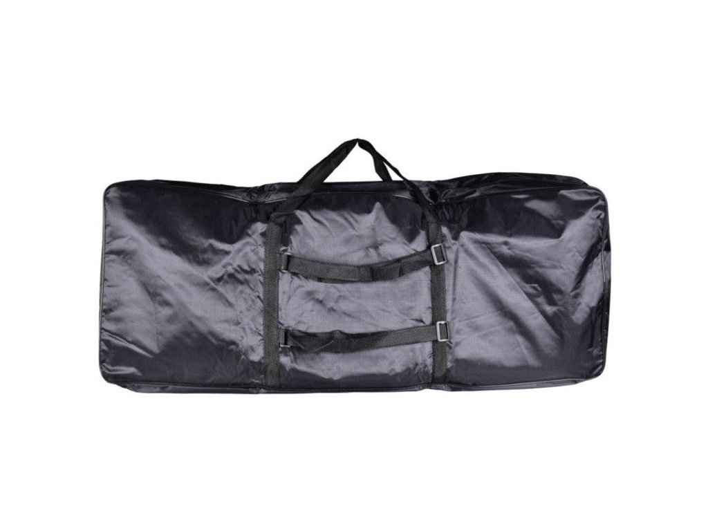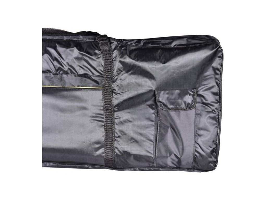 NN KEY61 BAG to solidny, czarny futerał na 61-klawiszowe keyboardy. Futerał jest wykonany z mocnej tkaniny syntetycznej odpornej na wilgoć. Wszystkie jej szwy krawędziowe są wzmocnione elastyczną taśmą, aby zapobiec uszkodzeniom i przypadkowemu rozerwaniu. Podwójne ścianki są wyściełane pianką o grubości 5 mm, która dodatkowo chroni Twoje urządzenie. Pokrowiec na klawisze NN KEY61 BAG posiada dwustronny zamek błyskawiczny, który otwiera torbę z trzech stron. Dzięki temu dostęp do instrumentu jest łatwiejszy niż w przypadku pokrowców otwieranych wzdłuż jednej krawędzi. Bezpieczne przenoszenie zapewniają uchwyty z mocnego materiału i regulowane paski, które umożliwiają noszenie torby jak plecak. Dwie zamykane kieszenie umożliwiają spakowanie kabli zasilających, kabli audio, nut i akcesoriów, których potrzebuje każdy muzyk.