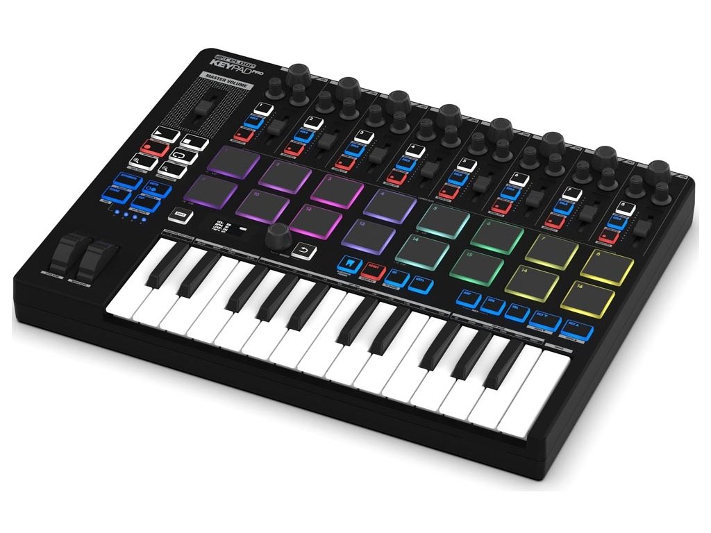 Reloop Keypad Pro to wszechstronny kontroler MIDI, idealny do produkcji muzycznej w domowym studio i w podróży. Łączy mini klawiaturę, pady perkusyjne, fadery i inne elementy sterujące dla intuicyjnej obsługi Twojego DAW.