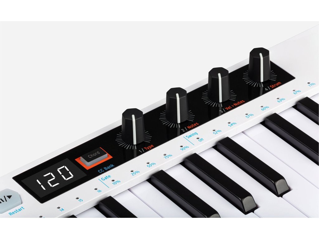 Keystep posiada 37 dynamicznie czułych klawiszy Slim Key z aftertouch, których wielkość została starannie dopracowana, abyś podczas gry nie musiał niczego poświęcać, a instrument zachował kompaktowe rozmiary. W porównaniu do klasycznej wersji, KeyStep 37 ma zintegrowany generator akordów z cyfrowym wyświetlaczem i panelem sterowania do szczegółowego ustawiania wartości, takich jak typ akordu, prędkość i artykulacja.